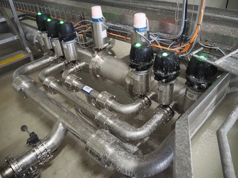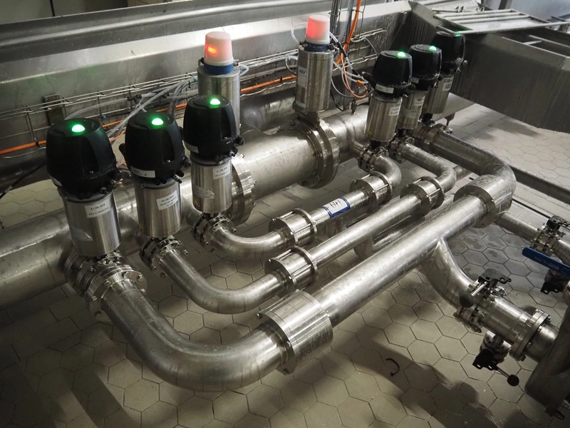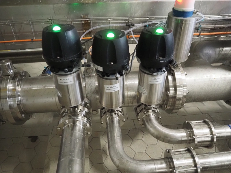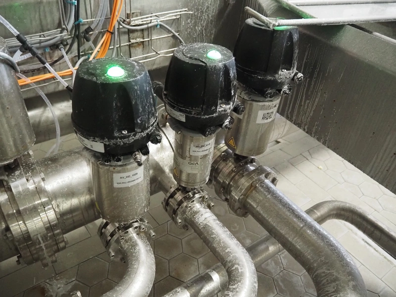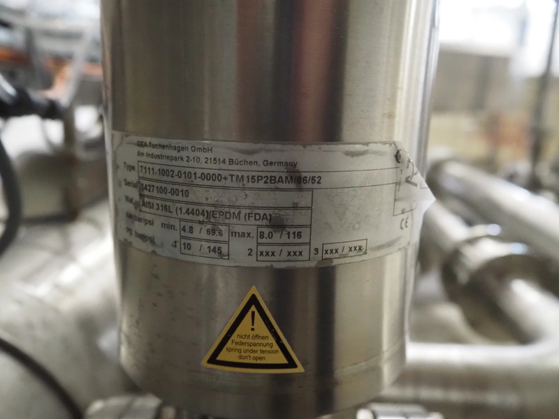 8 valves, brands: (6x) GEA Tuchenhagen GmbH, (2x) AWH, dimensions: (6x) ø 150 mm x 550 mm, (2x) 330 mm x 120 mm x 700 mm.