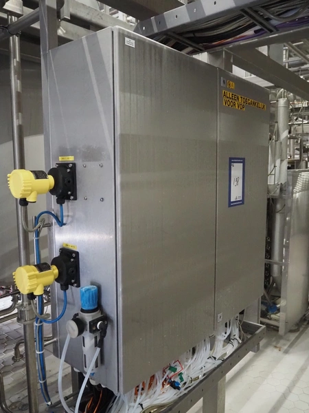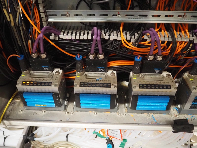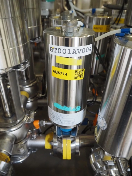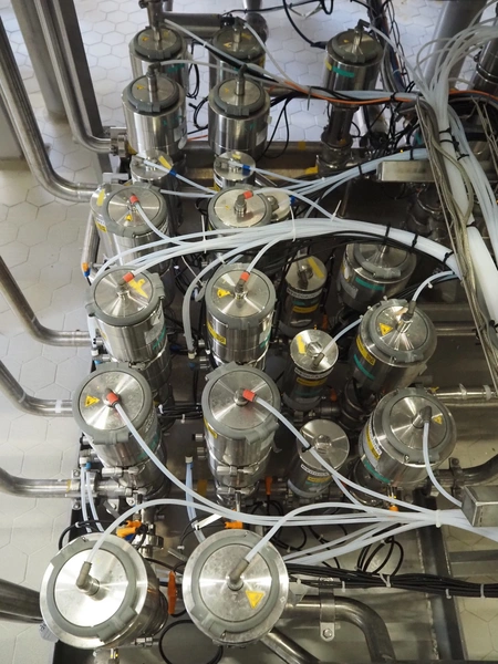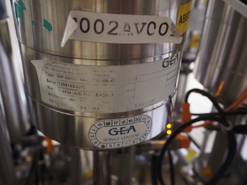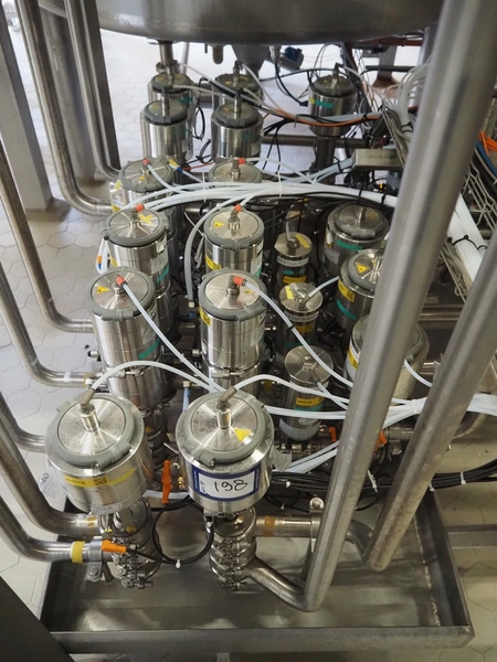 Manifold with approximately 28 GEA Tuchenhagen GmbH valves, dimensions: 1450 mm x 1300 mm x 900 mm. Including s/s control cabinet, dimensions: 300 mm x 1100 mm x 950 mm.