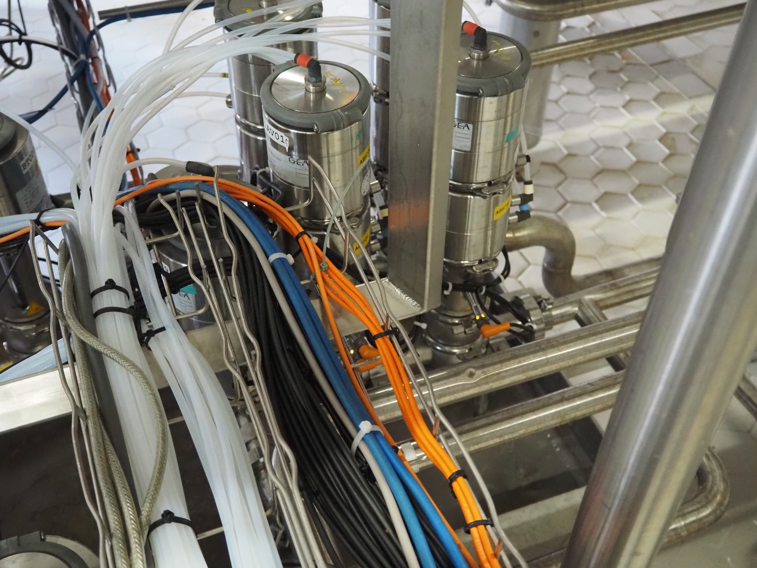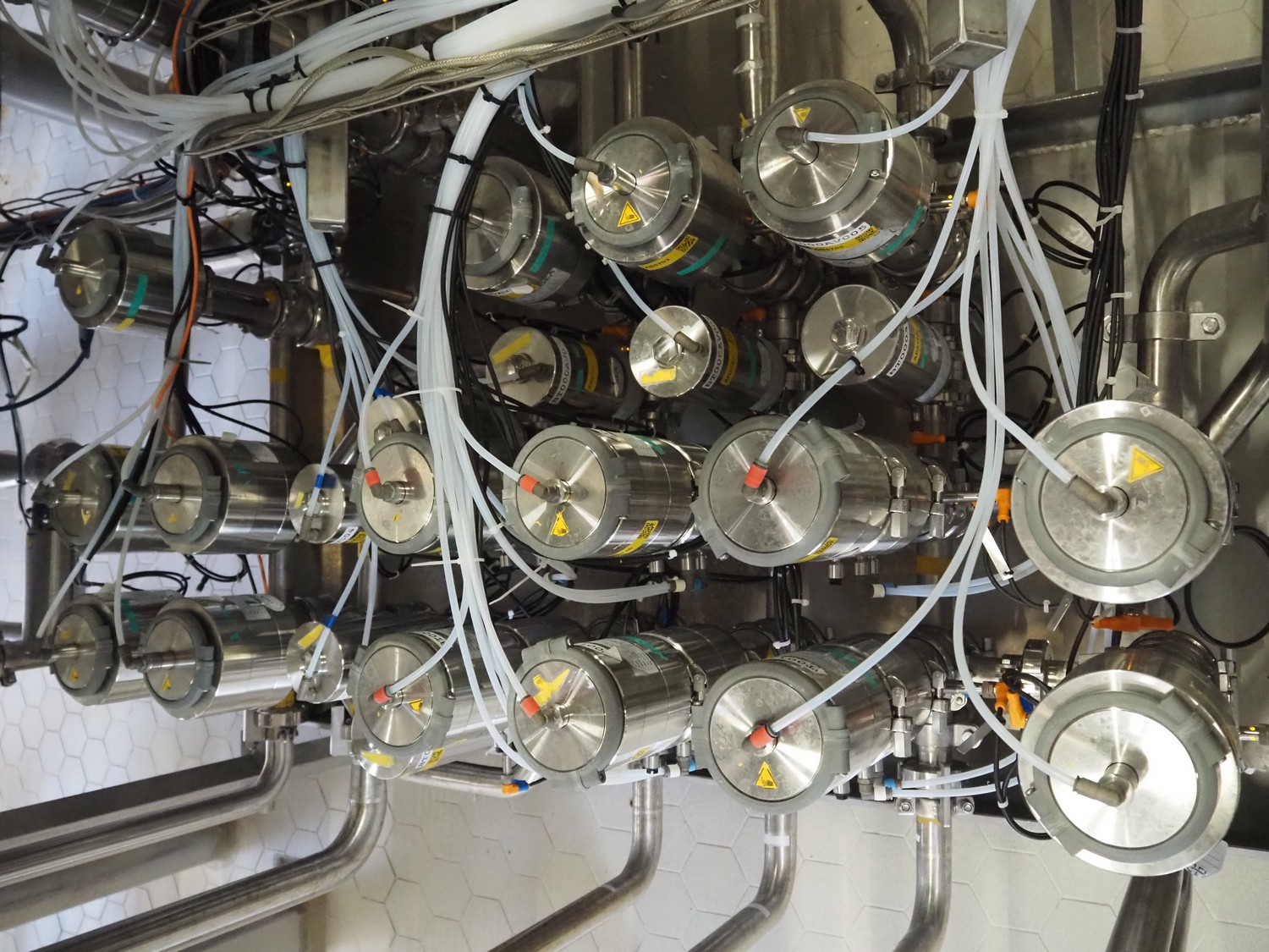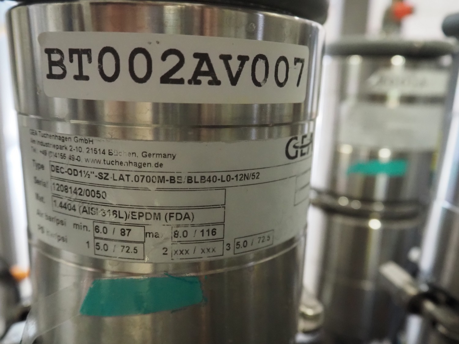 Manifold with approximately 28 GEA Tuchenhagen GmbH valves, dimensions: 1450 mm x 1300 mm x 900 mm. Including s/s control cabinet, dimensions: 300 mm x 1100 mm x 950 mm.