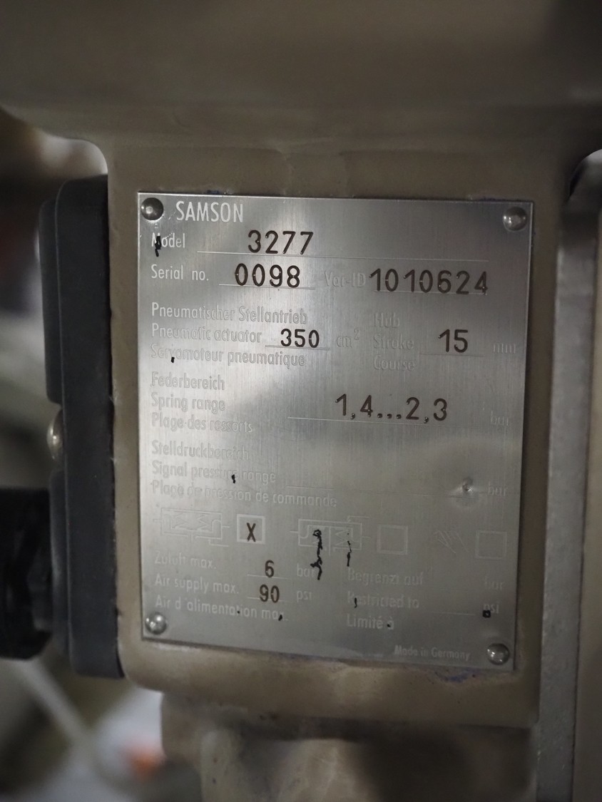 2 Samson valves, dimensions: (2x) 300 mm x 250 mm x 500 mm.