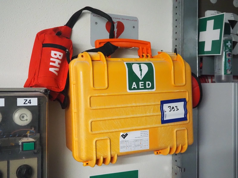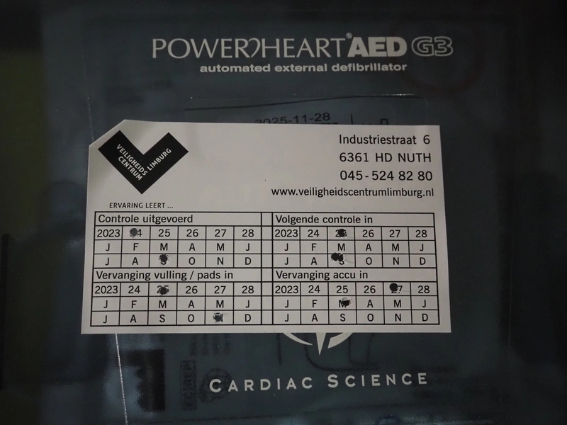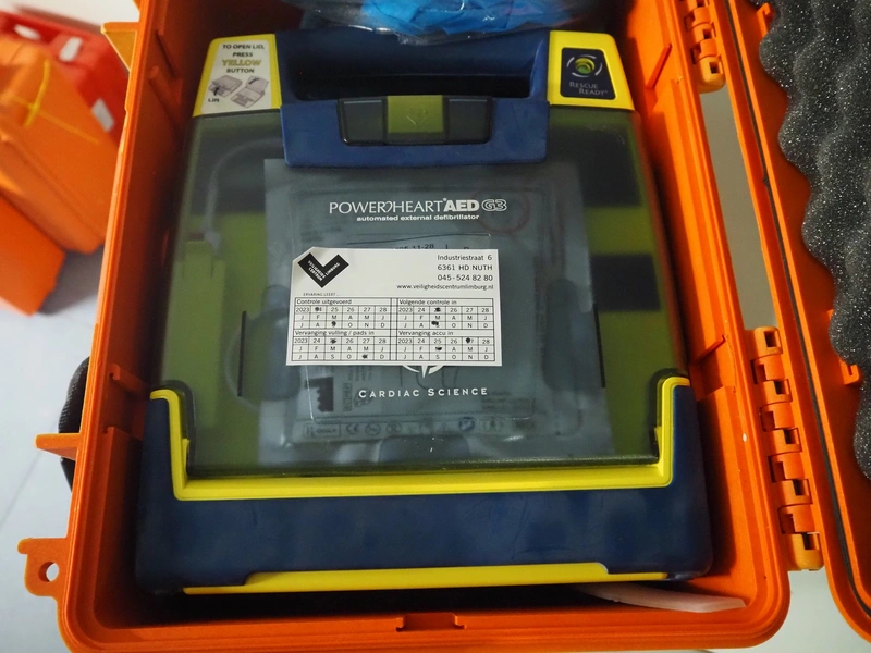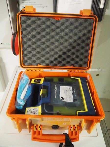 PowerHeartAED automated external defibrillator, dimensions: 200 mm x 400 mm x 340 mm.