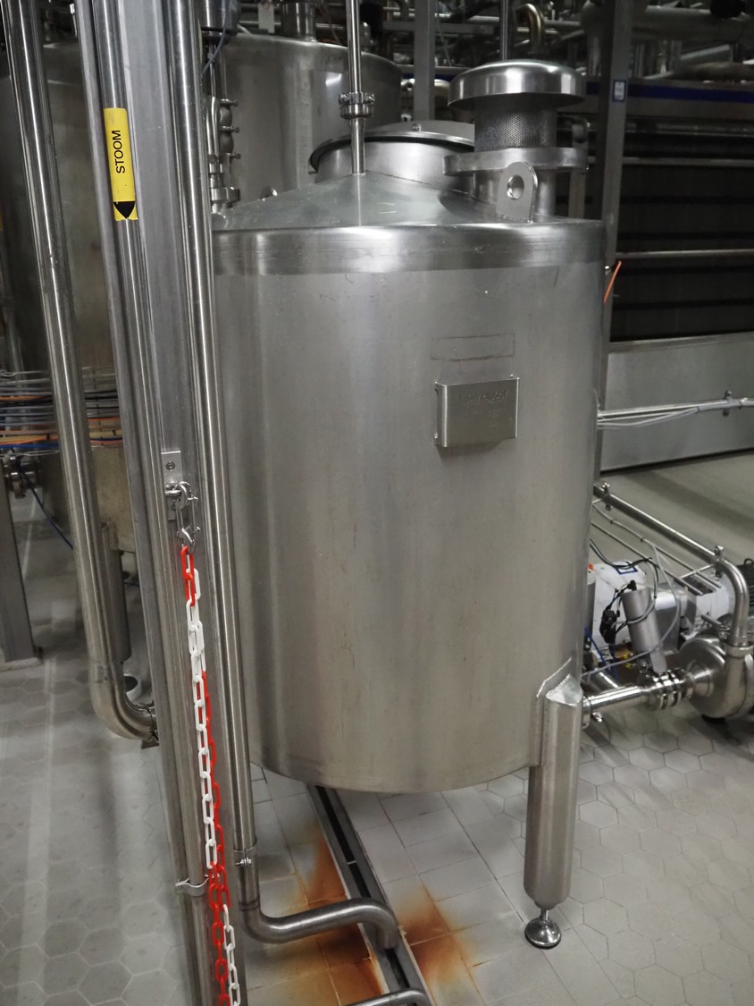 Holvrieka s/s tank, fabrication number: 041.014, year of construction: 2004, weight: 130 kg, volume: 500 litres, dimensions: 900 mm x 900 mm x 2100 mm.