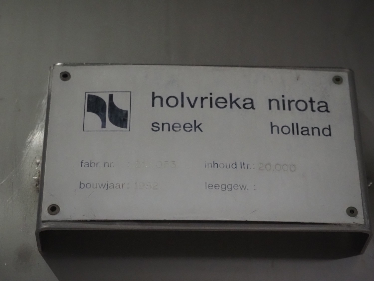 Holvrieka s/s isolated ice water cooled tank, year of construction: 1982, volume: 20000 litres, dimensions: ø 2600 mm x 6750 mm.