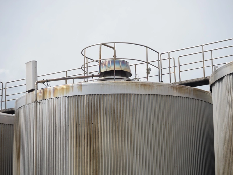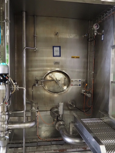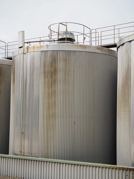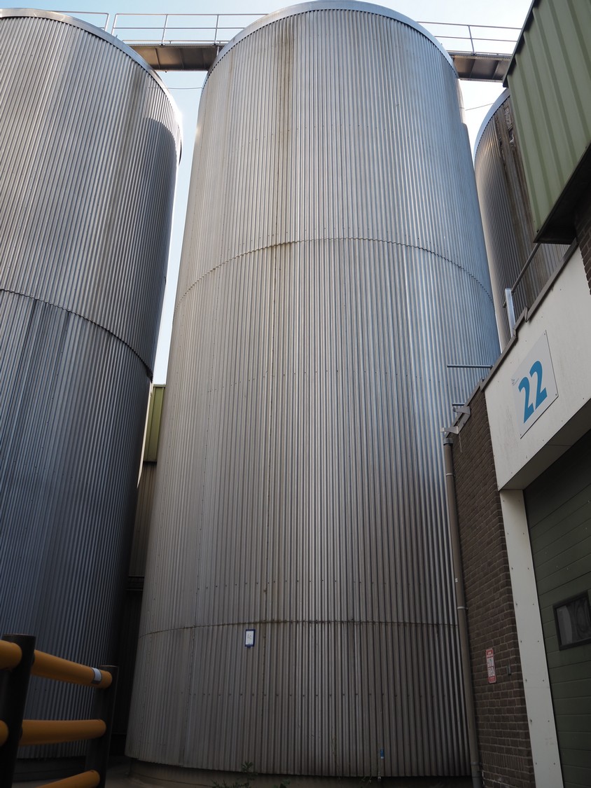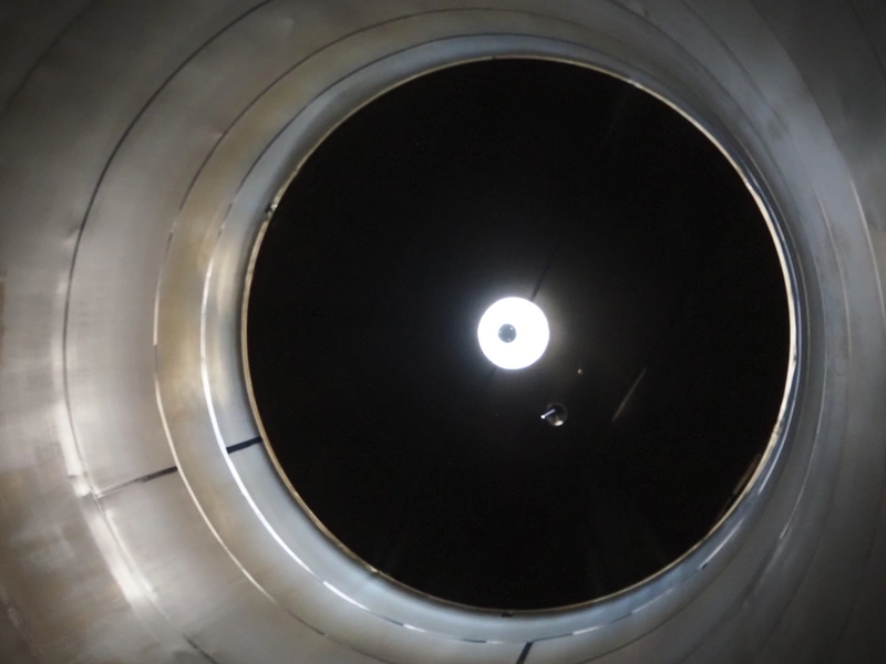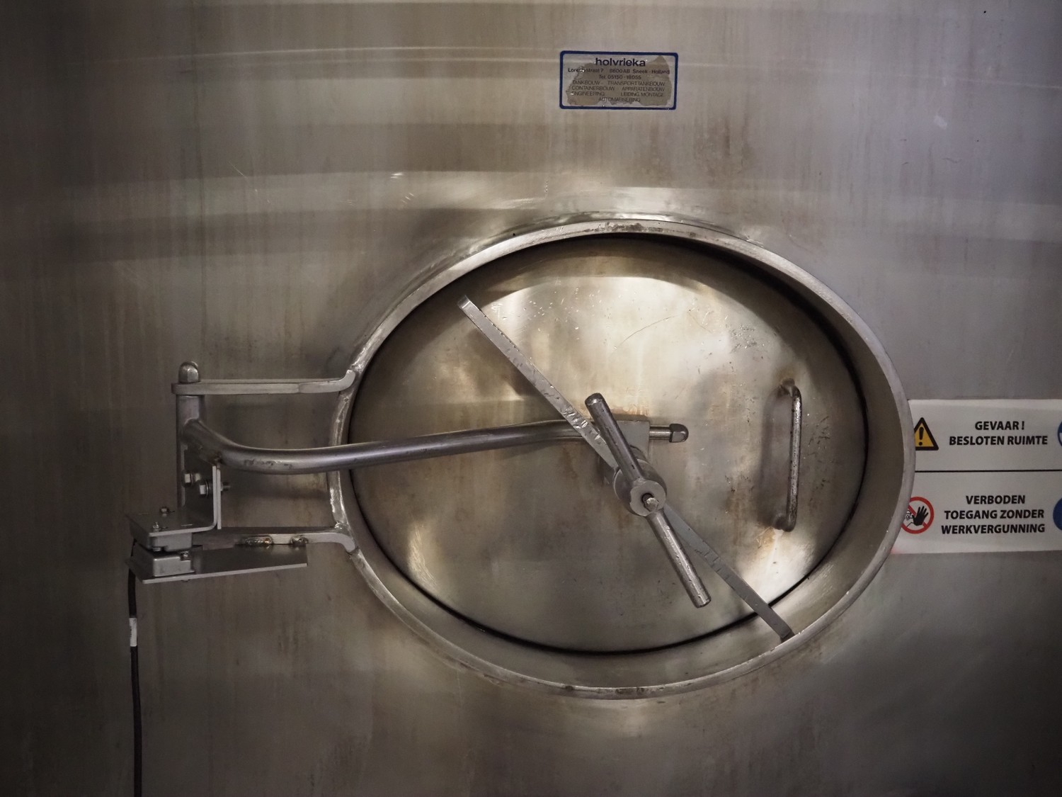 Holvrieka s/s tank, inside dimensions: ø 6040 mm x 13200 mm, total dimensions: ø 6150 mm x 13415 mm.