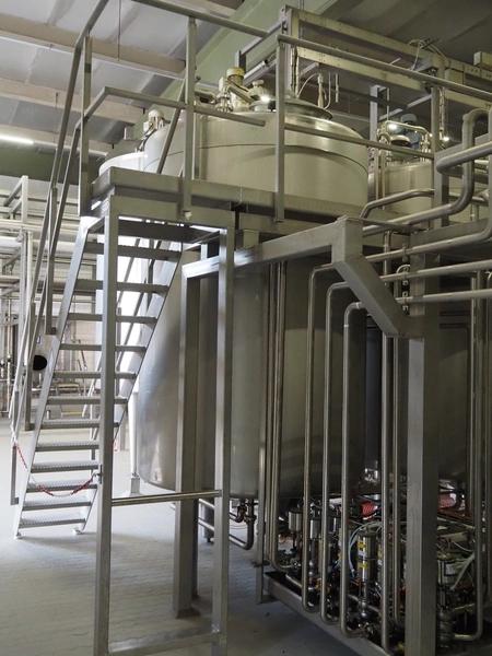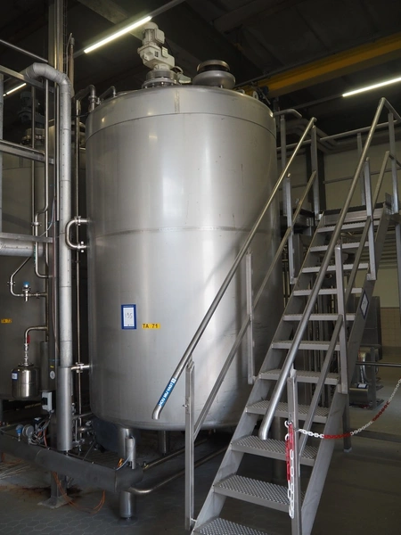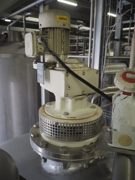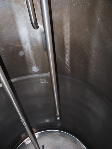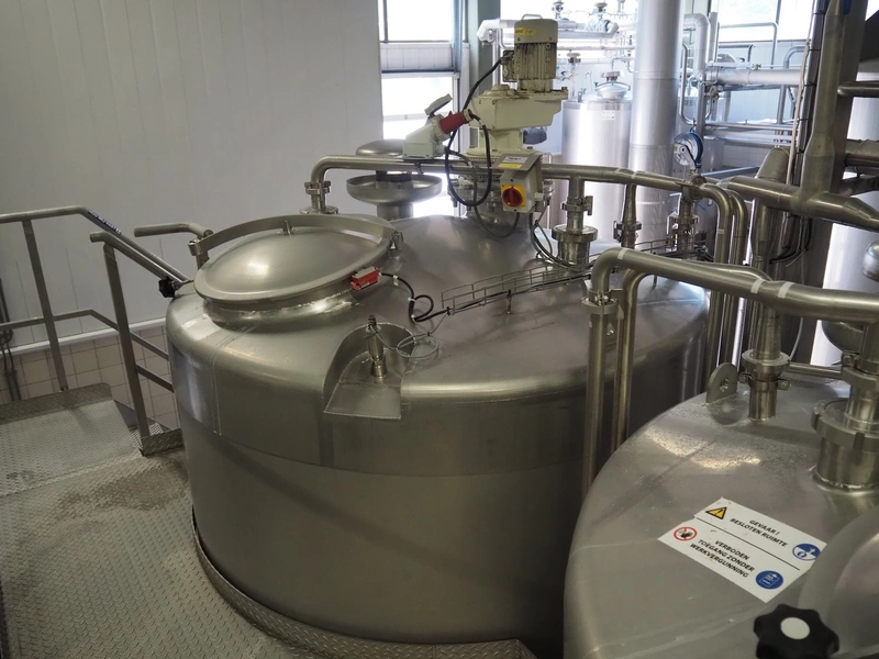 S/s double jacketed heated tank with Jongia agitator, inside dimensions: ø 1700 mm x 2850 mm, type agitator: LD 40, total dimensions: ø 1850 mm x 4350 mm.