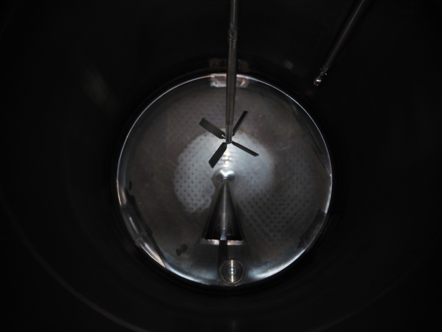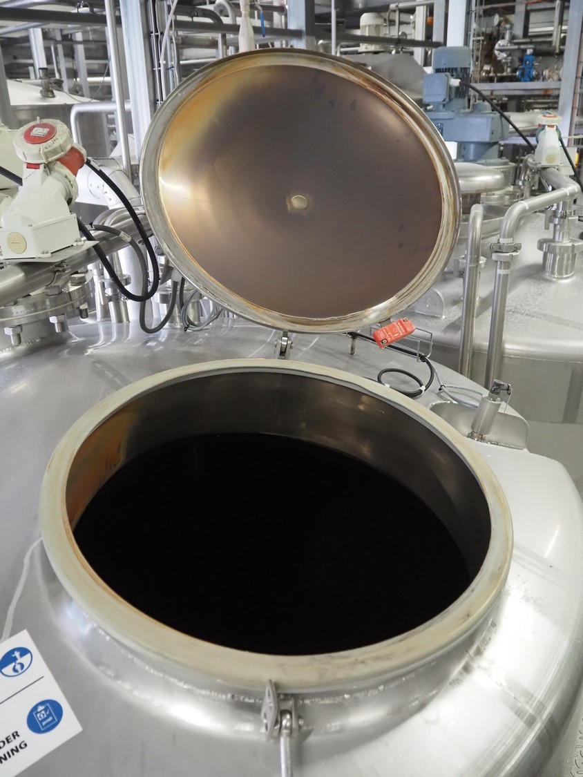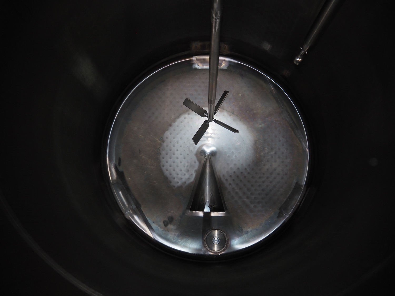 S/s double jacketed heated tank with Jongia agitator, inside dimensions: ø 1700 mm x 2850 mm, type agitator: LD 40, total dimensions: ø 1850 mm x 4350 mm.