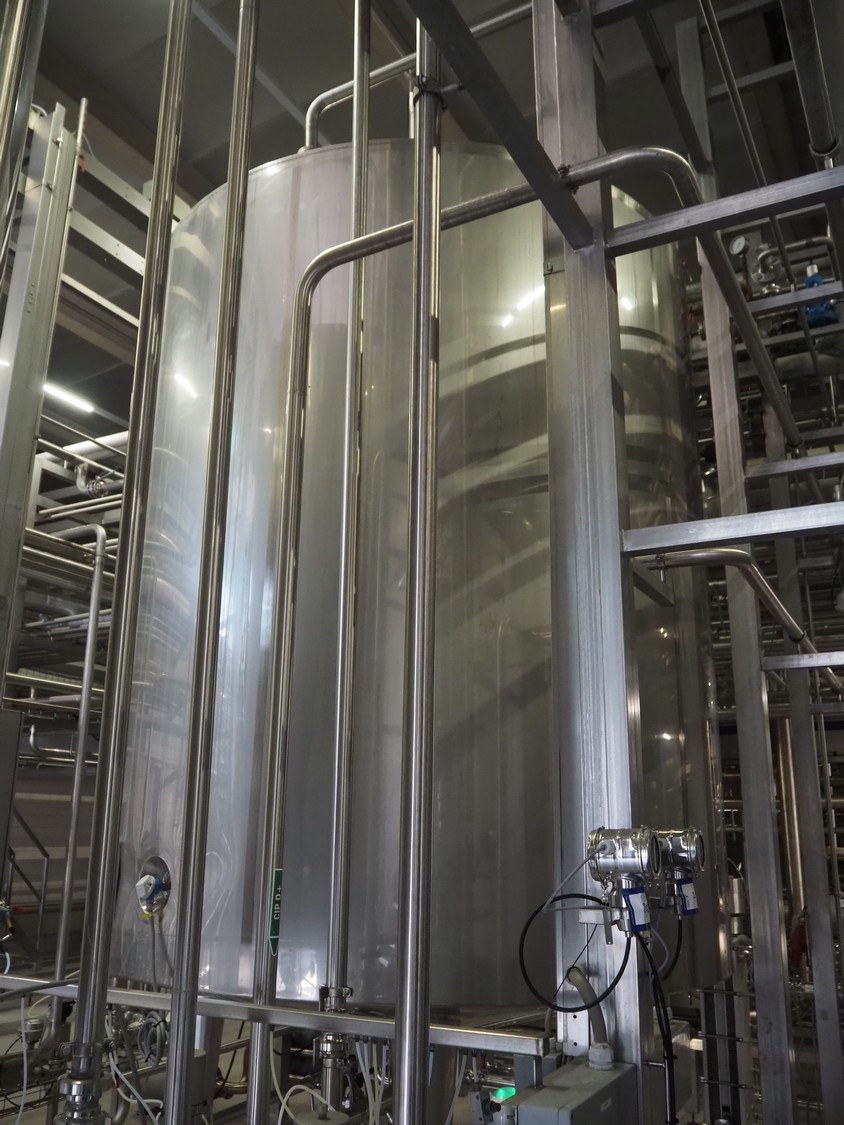 Goavec S.A. s/s isolated tank used for whey cream and bactofugate, type: FERMENTATION-YAOURT, serial number: 86-AM-55, year of construction: 1986, volume: 12000 litres, dimensions: ø 2600 mm x 5250 mm.