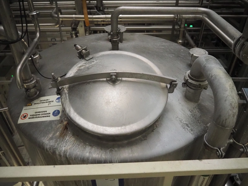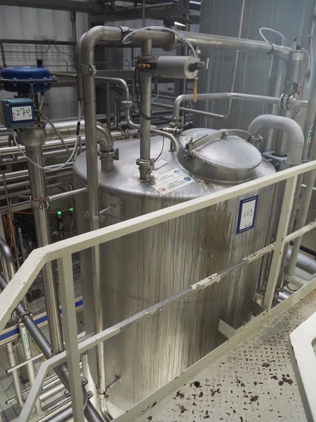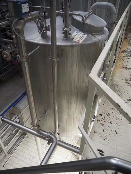 S/s tank, inside dimensions: ø 1250 mm x 2150 mm, total dimensions: 1250 mm x 1300 mm x 4000 mm.