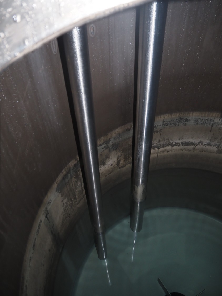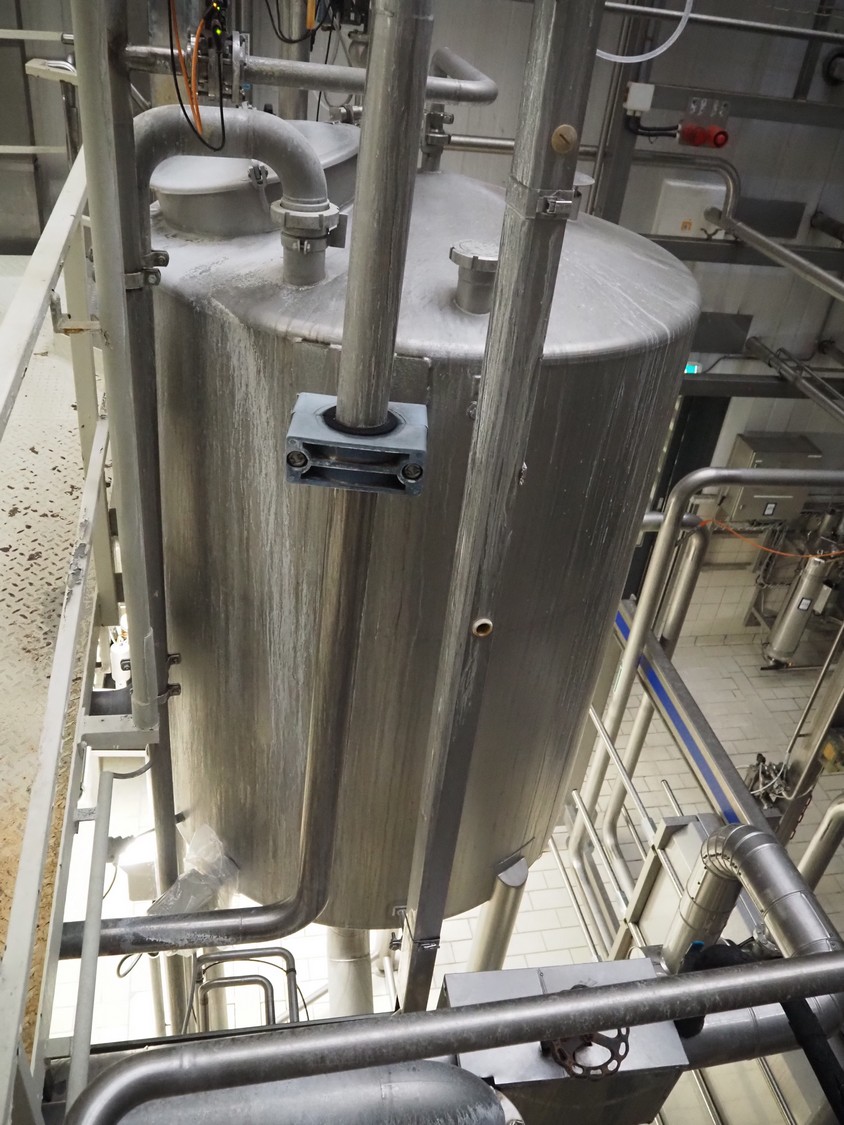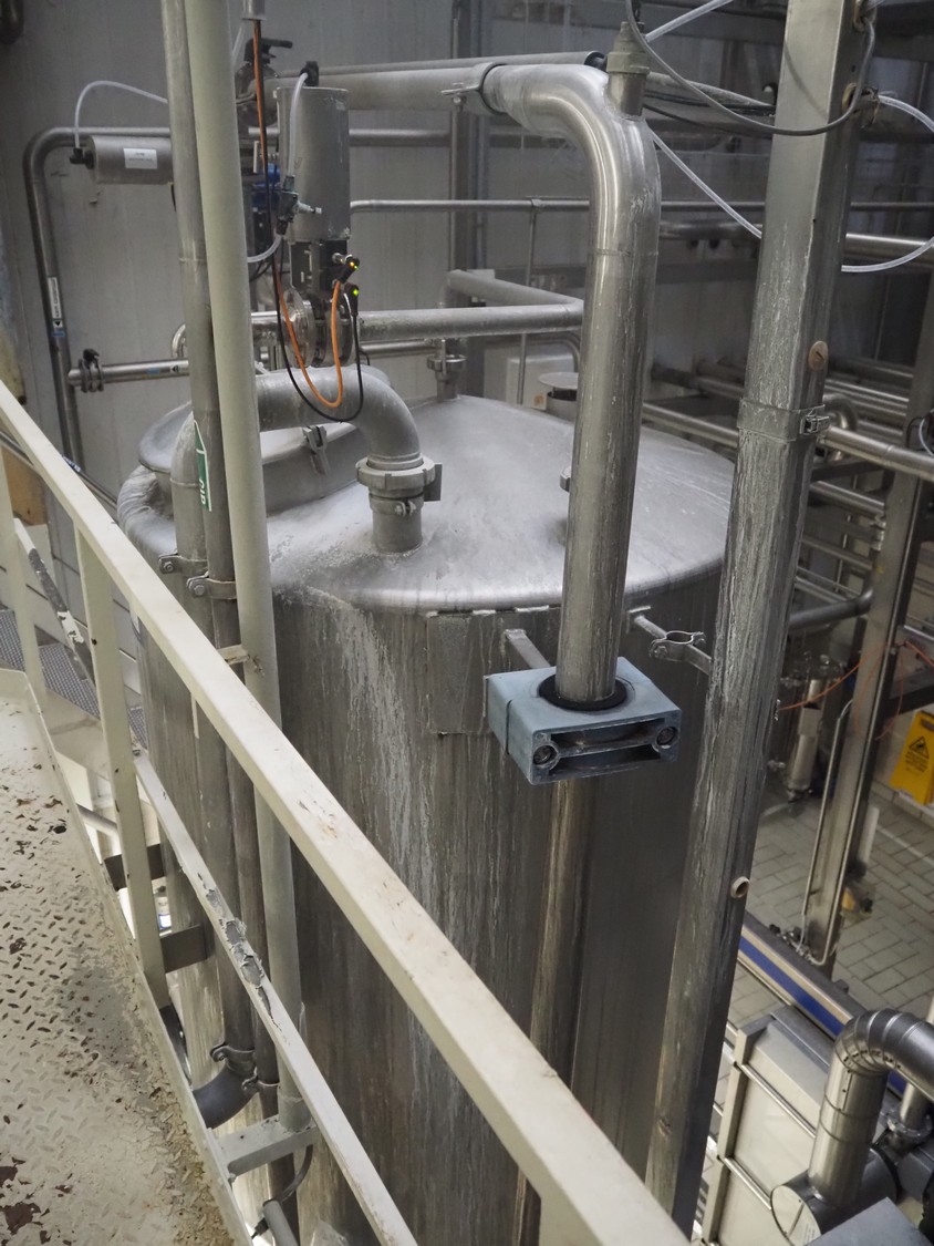 S/s tank, inside dimensions: ø 1250 mm x 2150 mm, total dimensions: 1250 mm x 1300 mm x 4000 mm.