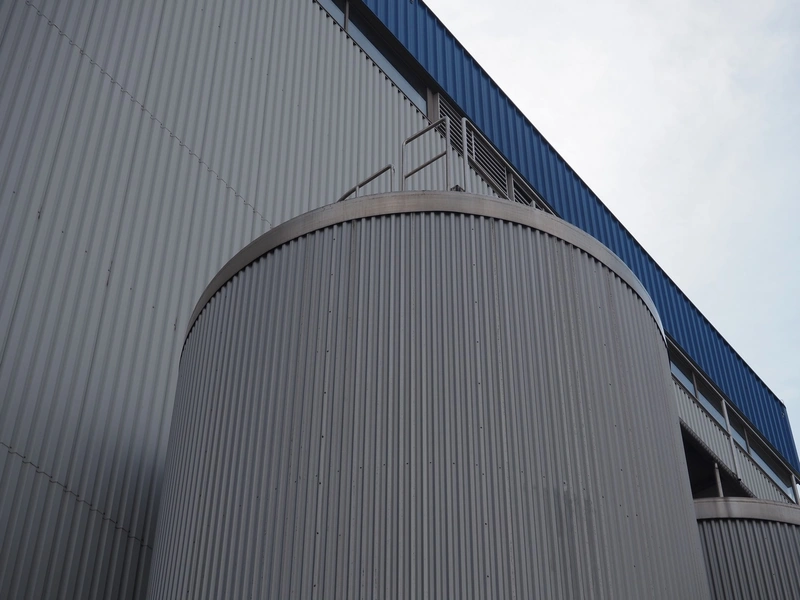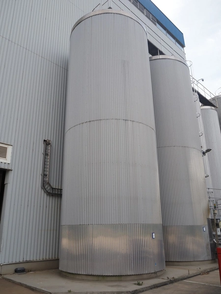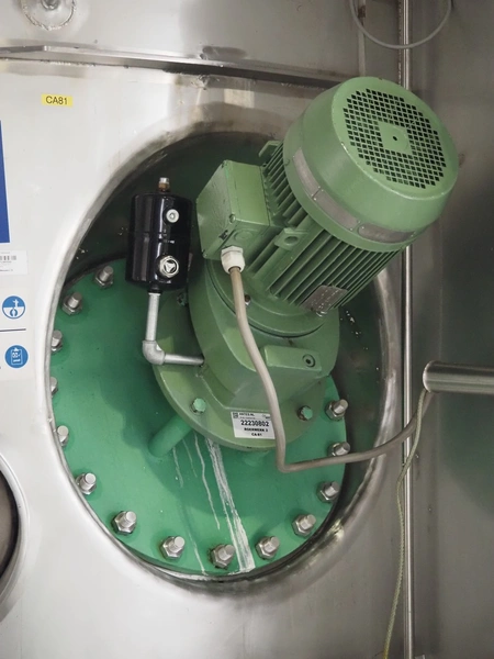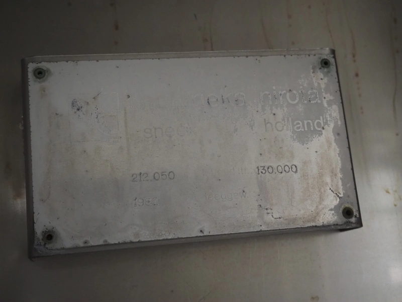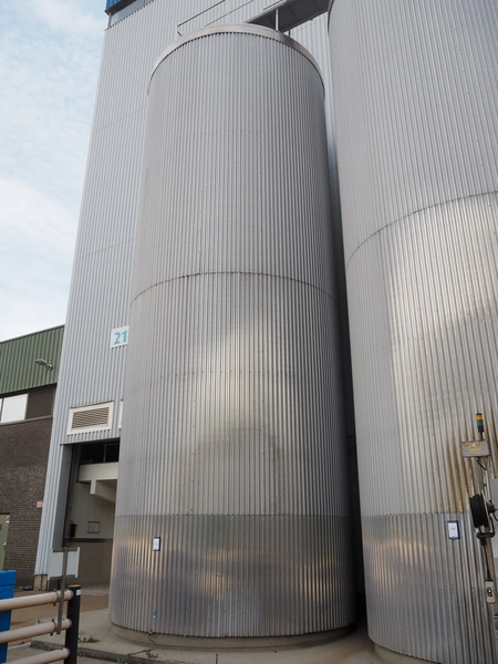 Holvrieka s/s isolated tank, fabrication number: 212.050, year of construction: 1982, volume: 130000 litres, inside dimensions: ø 4000 mm x 10800 mm, Stelzer Rührtechnik GmbH agitator, type: SG 75 B2, total dimensions: ø 4150 mm x 11170 mm.