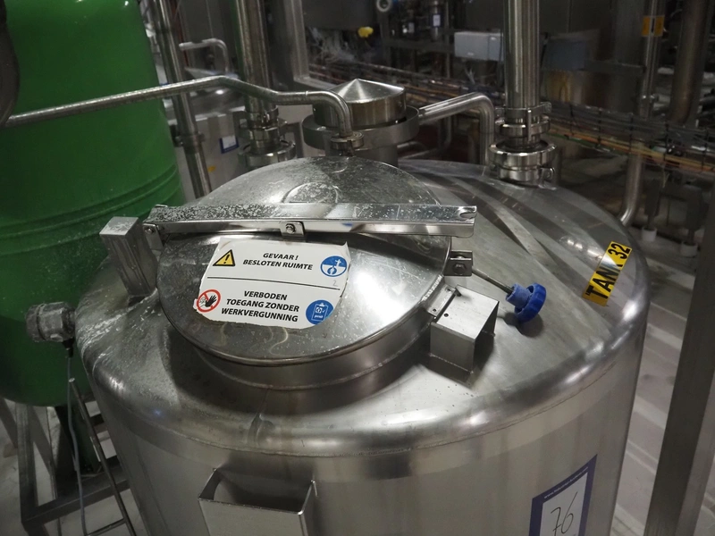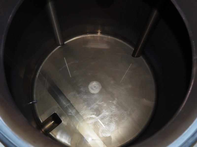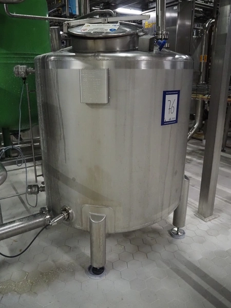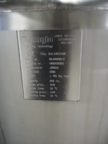 Jongia s/s balance tank with Endress+Hauser volume meter, year of construction: 2006, weight: 185 kg, volume: 950 litres, dimensions: ø 1100 mm x 1700 mm.