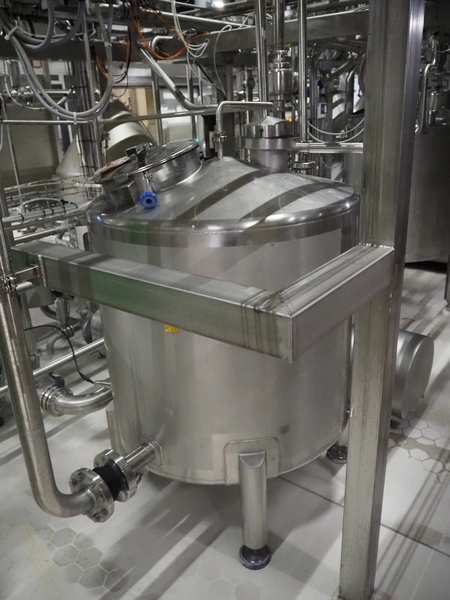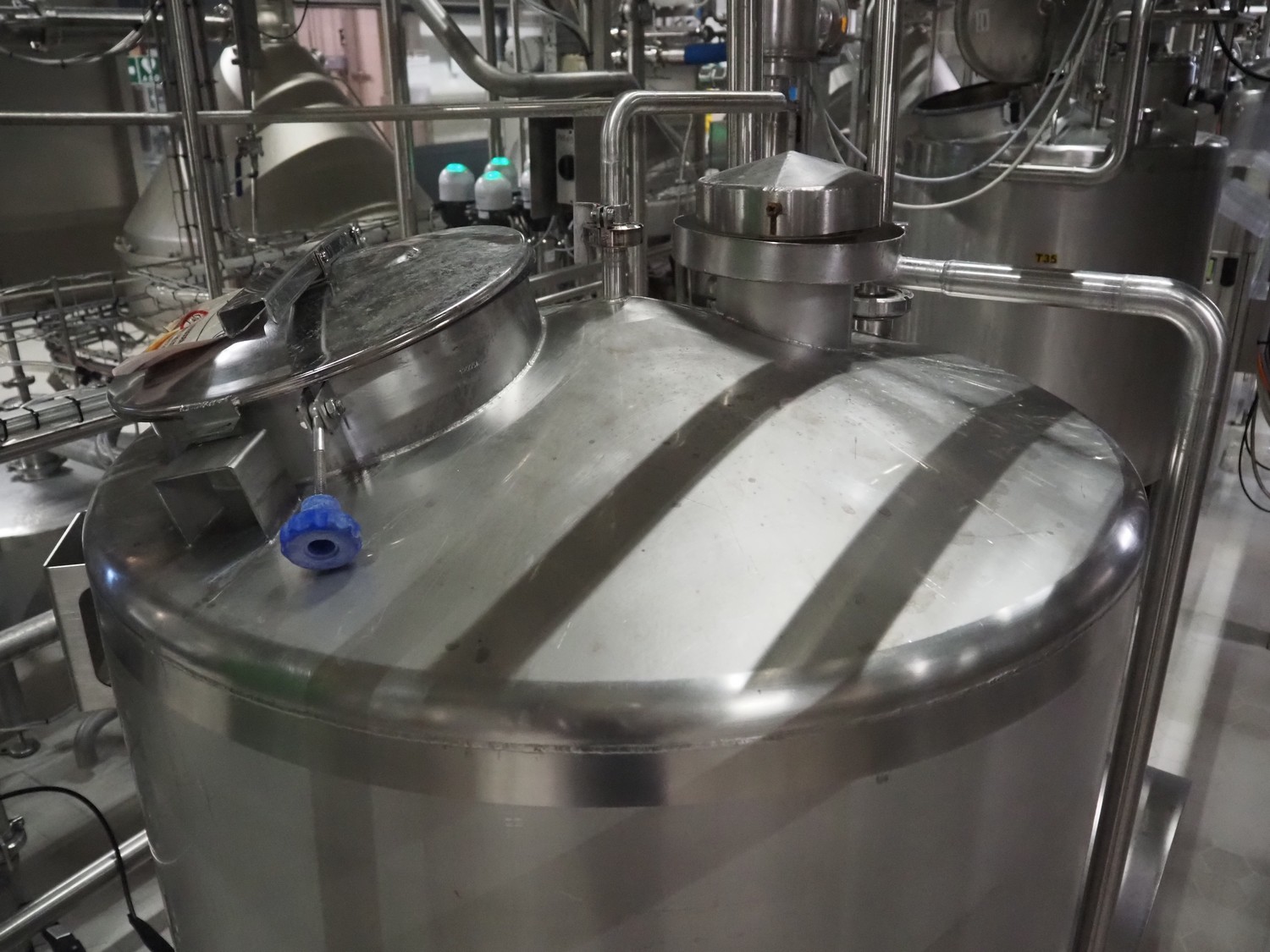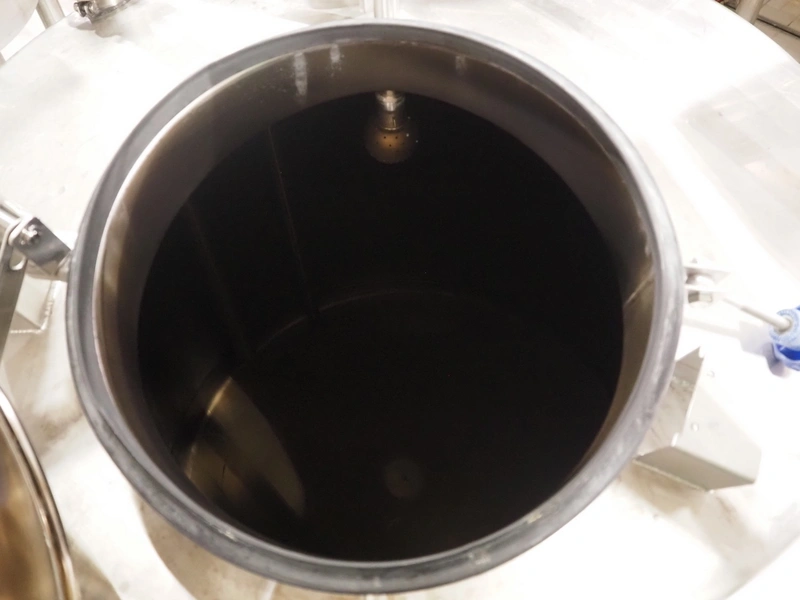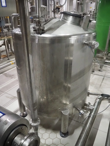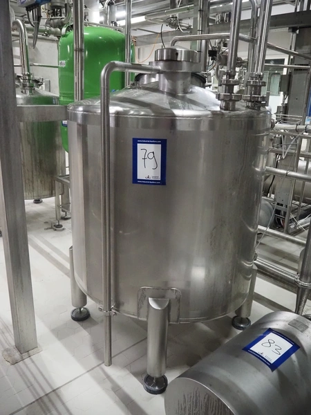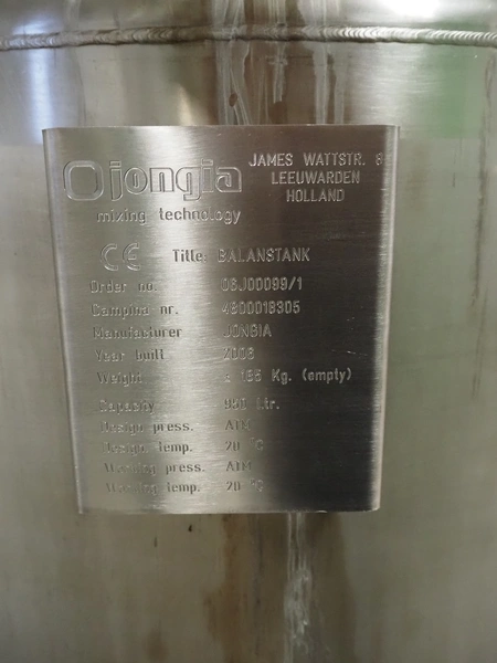 Jongia s/s balance tank with Endress+Hauser volume meter, year of construction: 2006, weight: 185 kg, volume: 950 litres, dimensions: ø 1100 mm x 1700 mm.