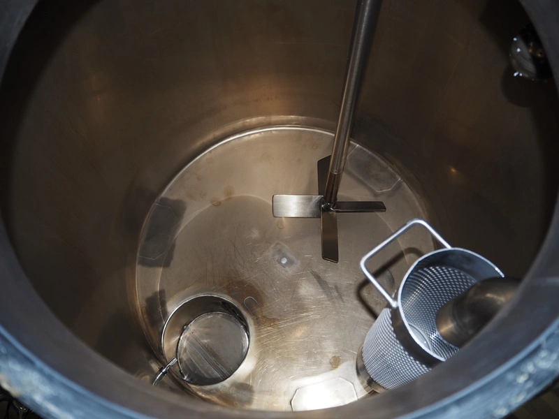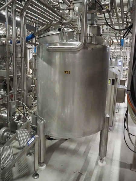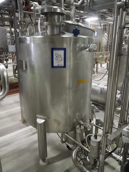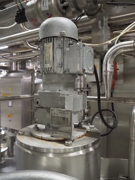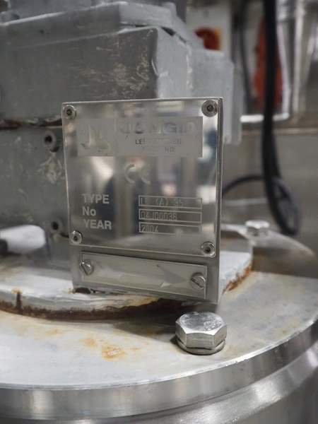 Holvrieka s/s tank with Jongia agitator, fabrication number: 041.012, year of construction: 2004, weight: 130 kg, volume: 500 litres, type agitator: LE (A) 35, dimensions: 900 mm x 900 mm x 2100 mm.