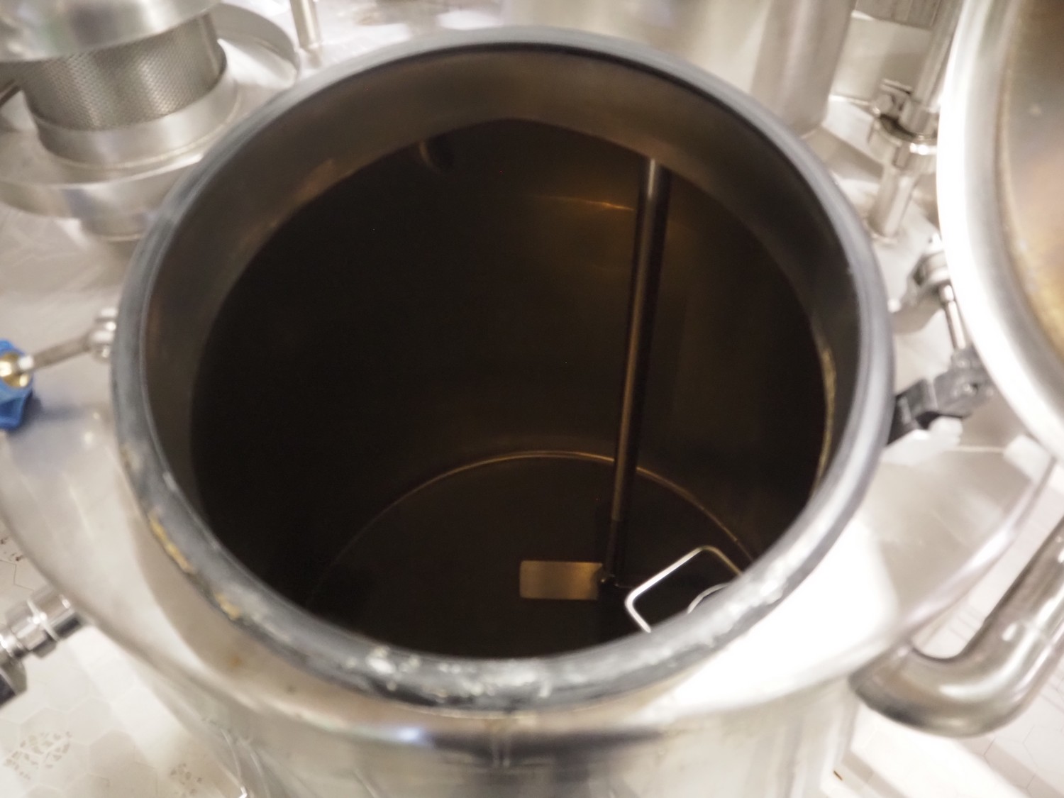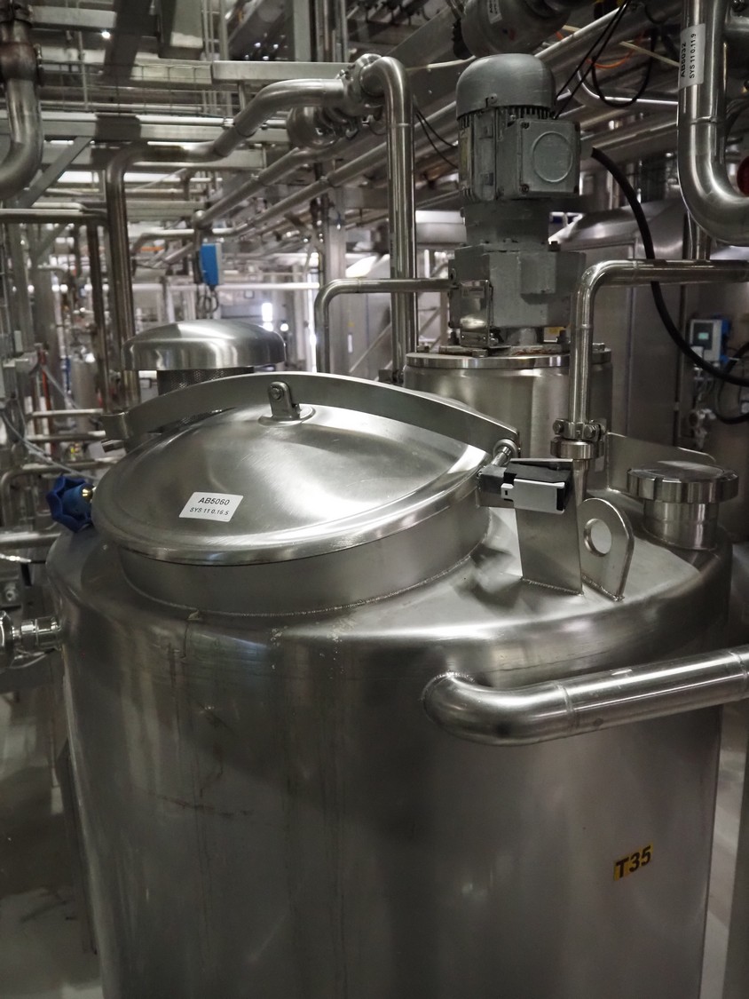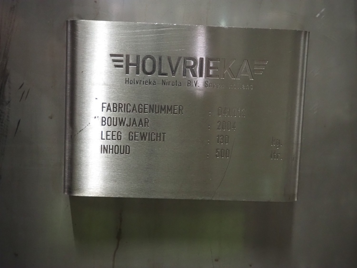 Holvrieka s/s tank with Jongia agitator, fabrication number: 041.012, year of construction: 2004, weight: 130 kg, volume: 500 litres, type agitator: LE (A) 35, dimensions: 900 mm x 900 mm x 2100 mm.