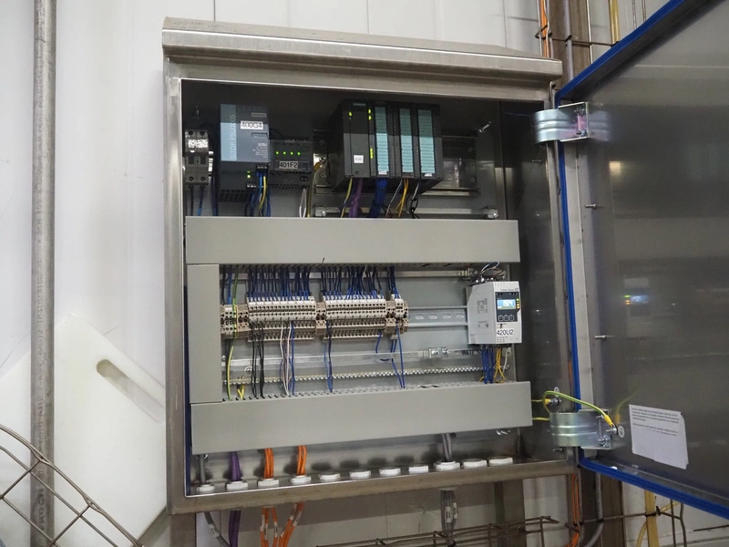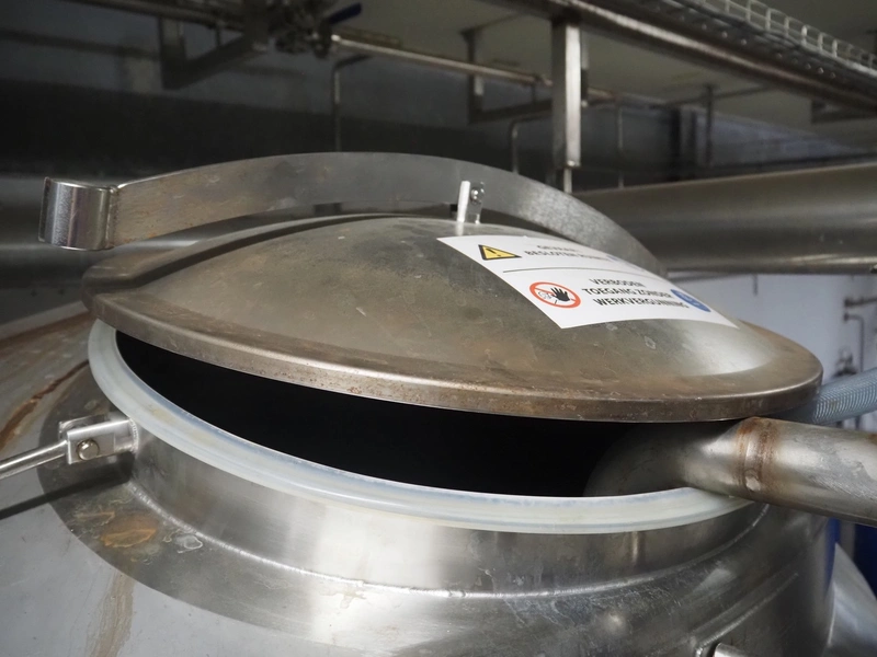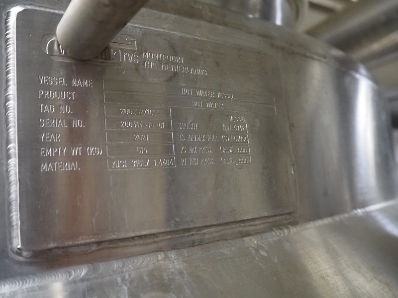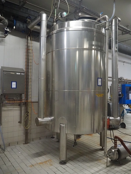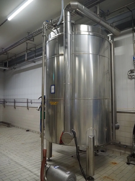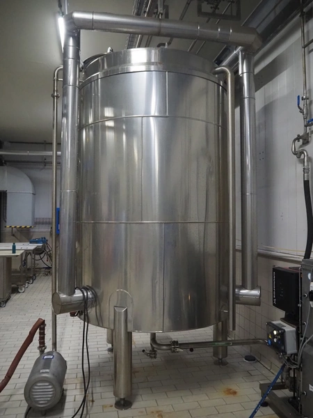 Veenbrink s/s isolated heated tank, direct steam injection, serial number: 200414-10-01, year of construction: 2021, volume: 5345 litres, dimensions: ø 1700 mm x 3550 mm. Including s/s switch cabinet with Endres + Hausser frequency convertor.