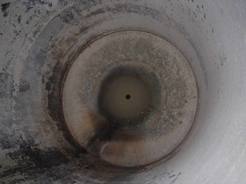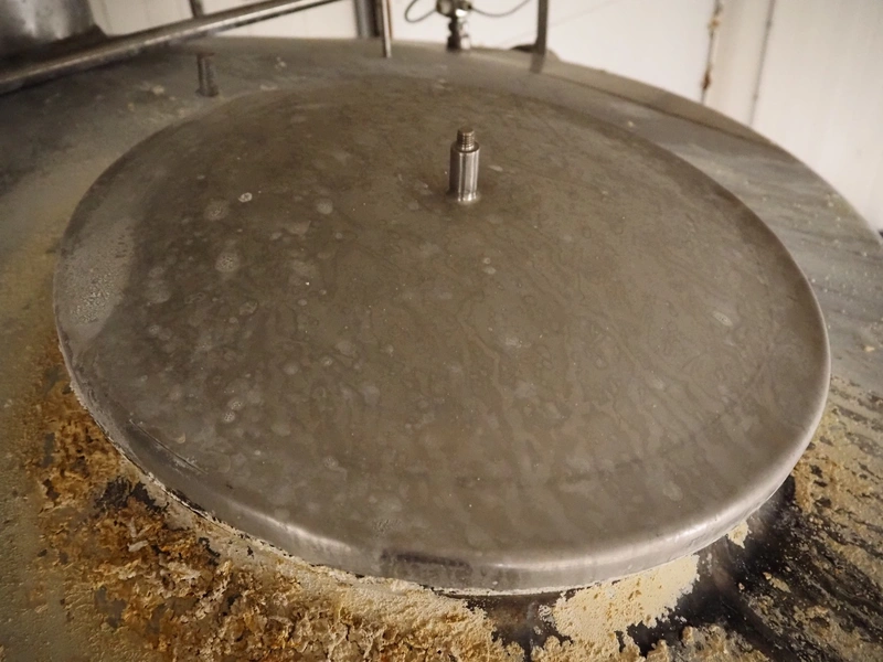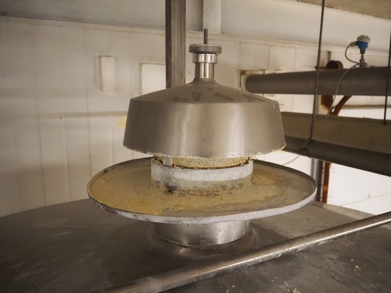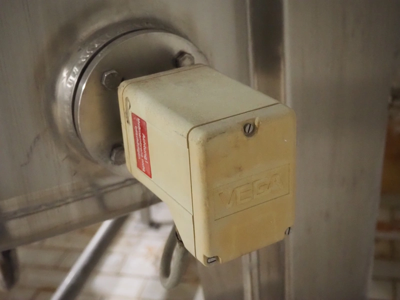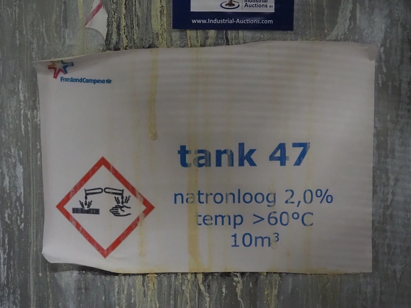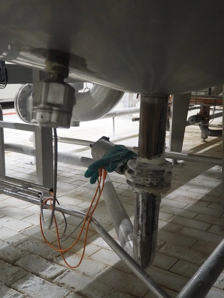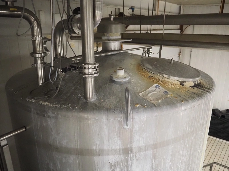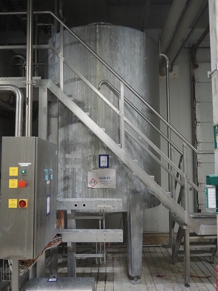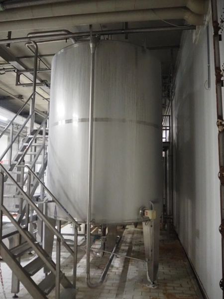 S/s CIP tank, volume: 10 m³, inside dimensions: ø 2150 mm x 3600 mm, total dimensions: ø 2200 mm x 4350 mm.