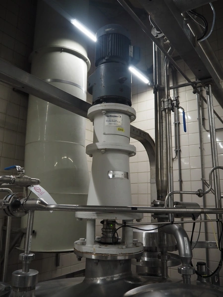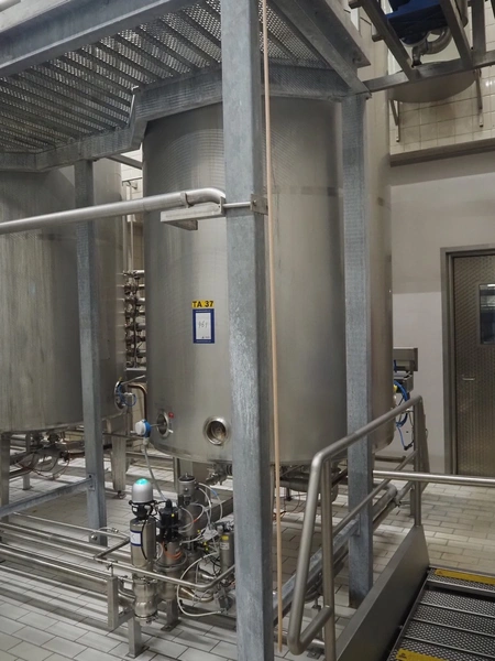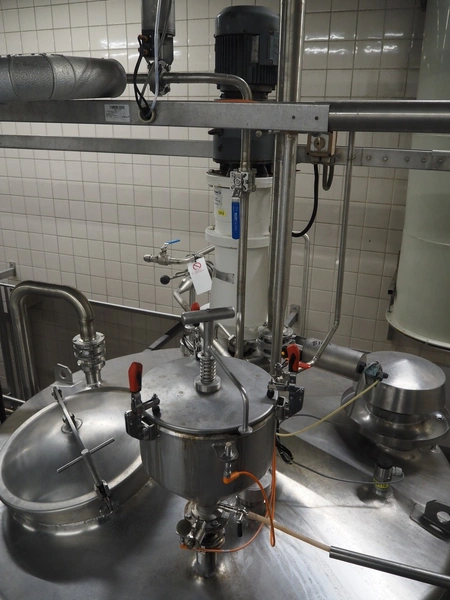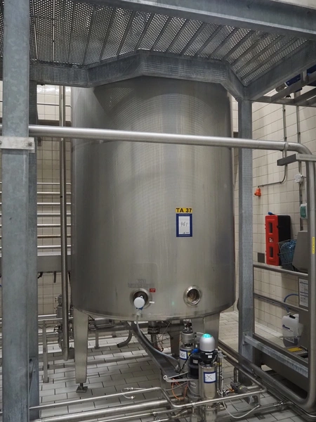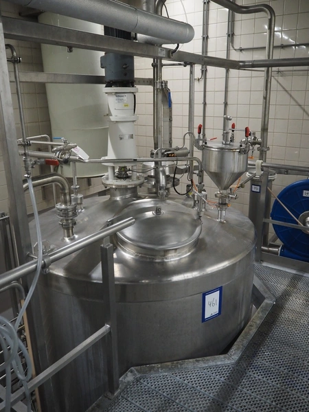 S/s isolated tank with Erwin Stelzer agitator, inside dimensions: ø 1600 mm x 2850 mm, type agitator: DROFG, total dimensions: ø 1700 mm x 5200 mm.