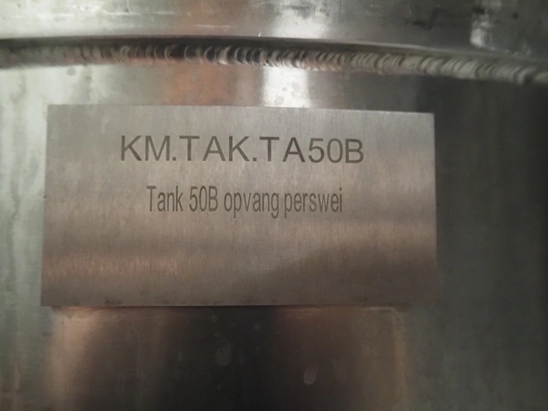 S/s receiving vessel, inside dimensions: ø 700 mm x 1350 mm, total dimensions: ø 840 mm x 1700 mm.