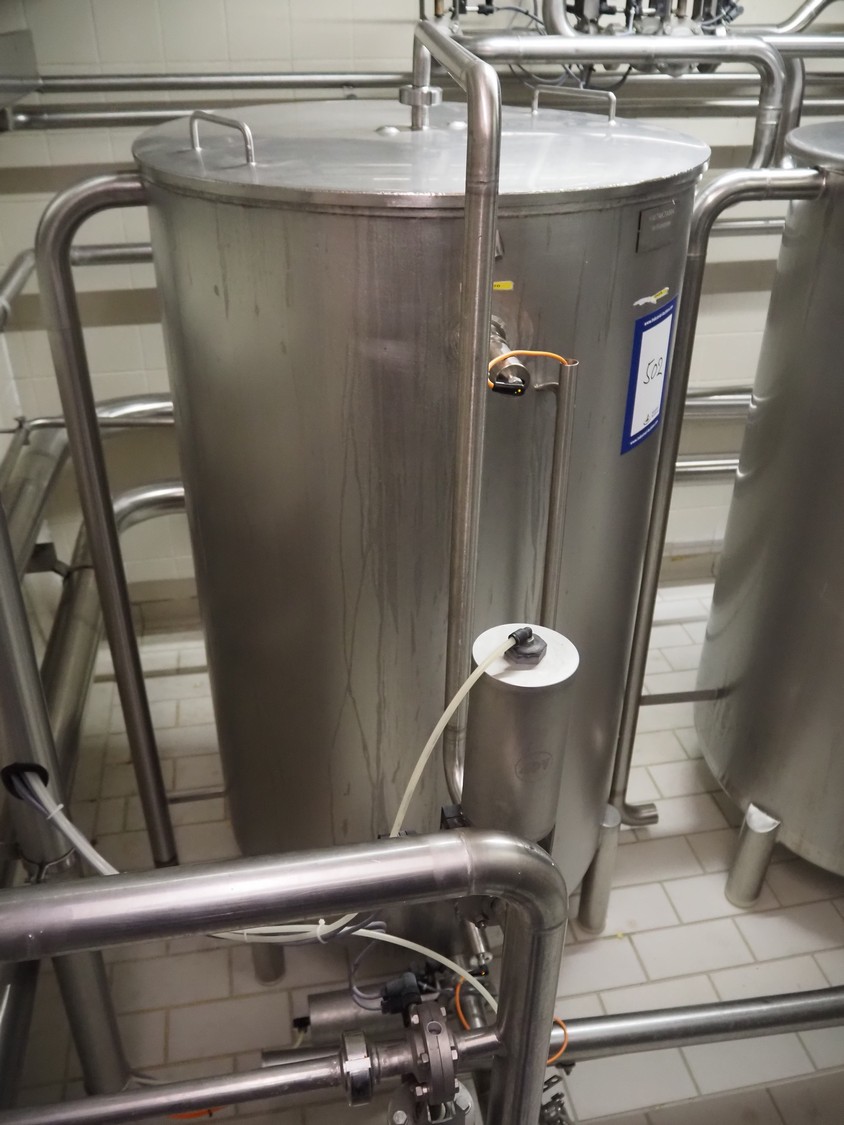 S/s receiving vessel, inside dimensions: ø 700 mm x 1350 mm, total dimensions: ø 840 mm x 1700 mm.