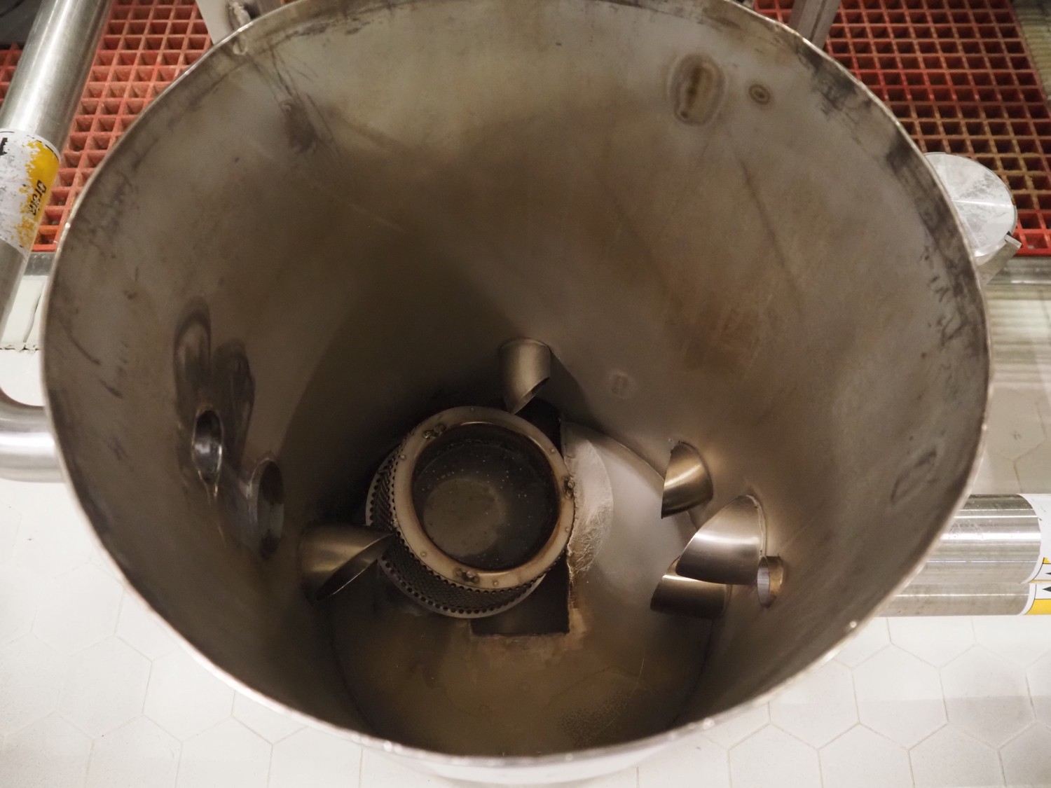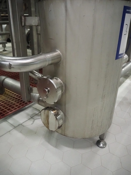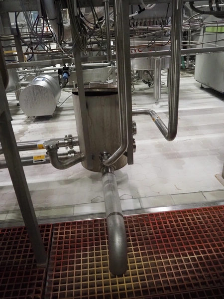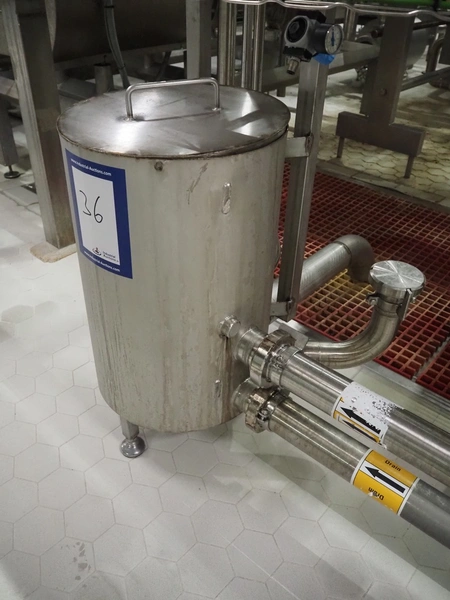 S/s drain tank, inside dimensions: ø 400 mm x 600 mm, total dimensions: 500 mm x 400 mm x 750 mm.