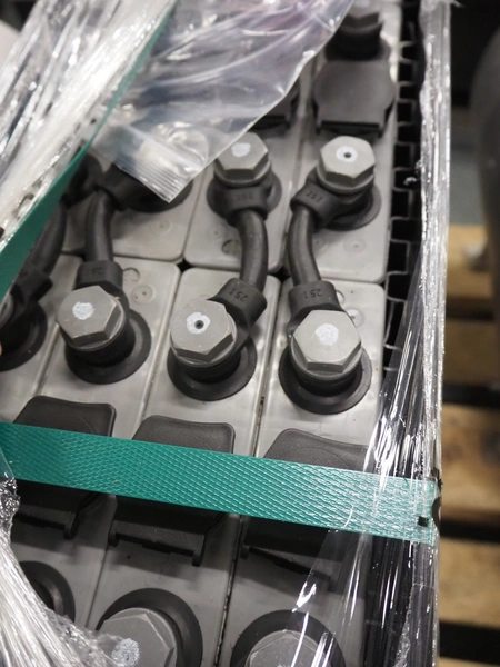 Exide Technologies battery for electric pallet lifter, type: 02 EPZS 0250 SC, serial number: 0302636454, year of construction: 02/2025, capacity: 250 Ah, 212 kg, dimensions: 620 mm x 220 mm x 620 mm.