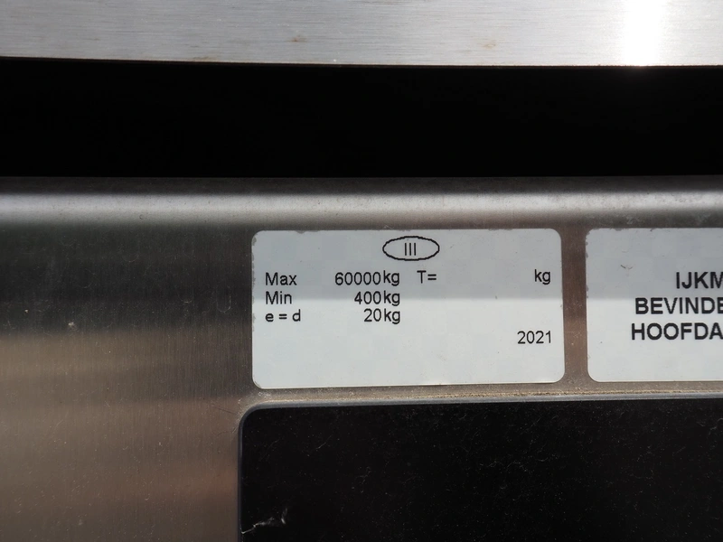 Precia Molen weighbridge, year of construction: 2021, weighing range: 400-60000 kg, e=d 20 kg, dimensions: 18000 mm x 3000 mm, 330 mm x 800 mm x 800 mm. Available from the end of November.