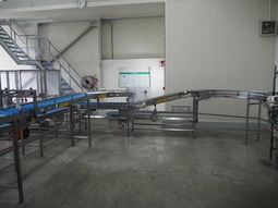 Lane dividing belt with 90° curve conveyor, s/s frame, plastic mesh belt, belt width: 450 mm, total dimensions: 3600 mm x 2350 mm x…0 bidsLot is closed