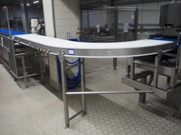 Van Meeuwen curve conveyor with 90° curve and belt washing unit, s/s frame, plastic mesh belt, belt width: 360 mm, total dimensions…0 bidsLot is closed -