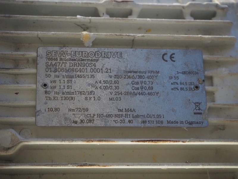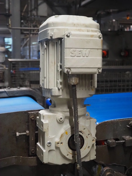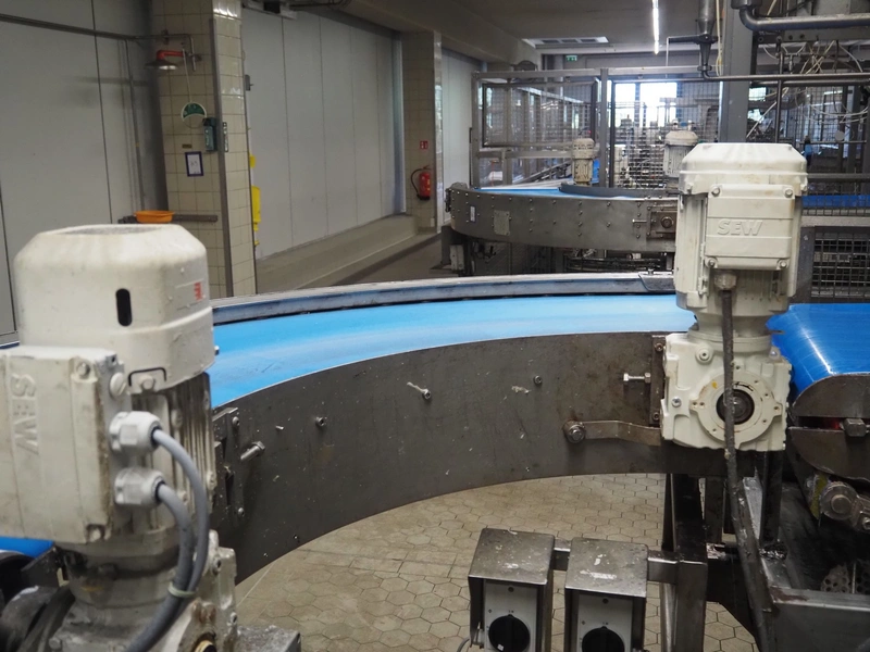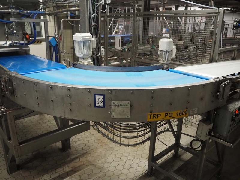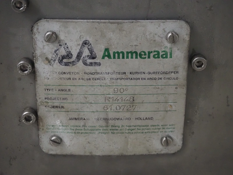 Ammeraal 90° curve conveyor, type: 90°, number: 61.0727, plastic belt, belt width: 600 mm, total dimensions: 1500 mm x 1200 mm x 1700 mm.