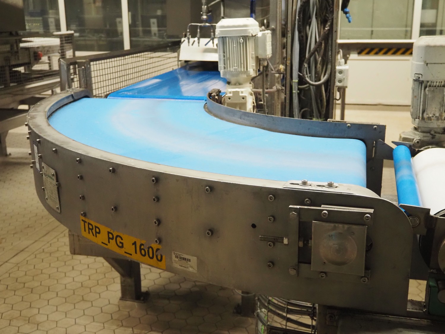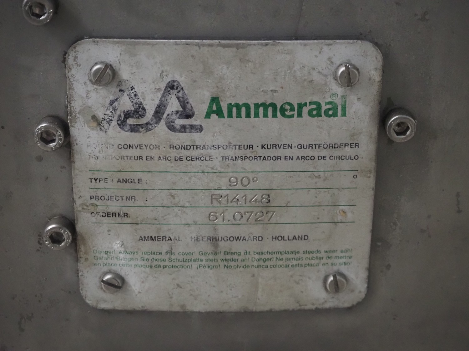 Ammeraal 90° curve conveyor, type: 90°, number: 61.0727, plastic belt, belt width: 600 mm, total dimensions: 1500 mm x 1200 mm x 1700 mm.