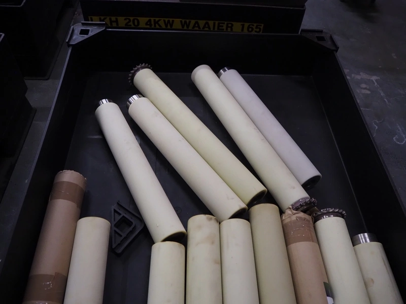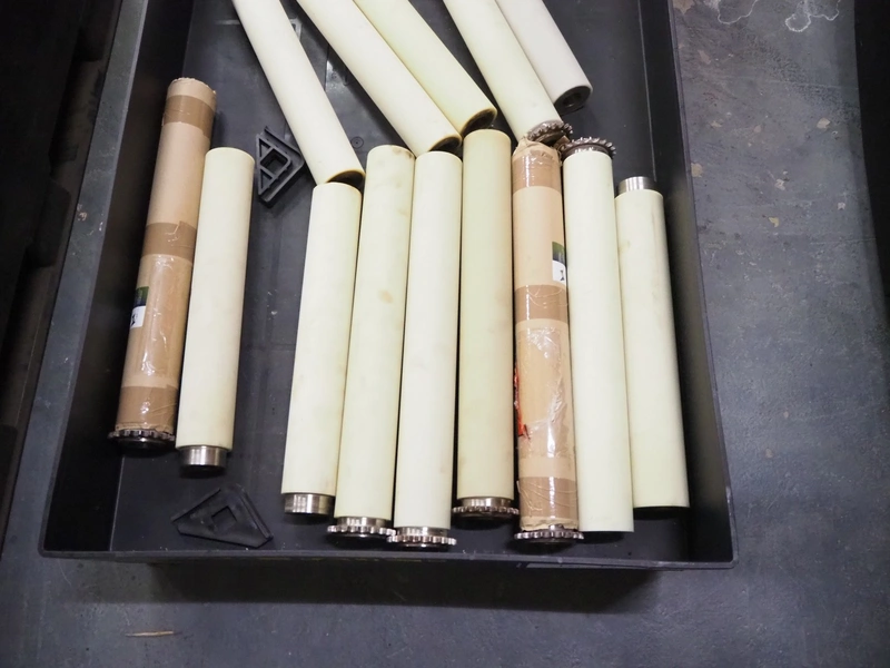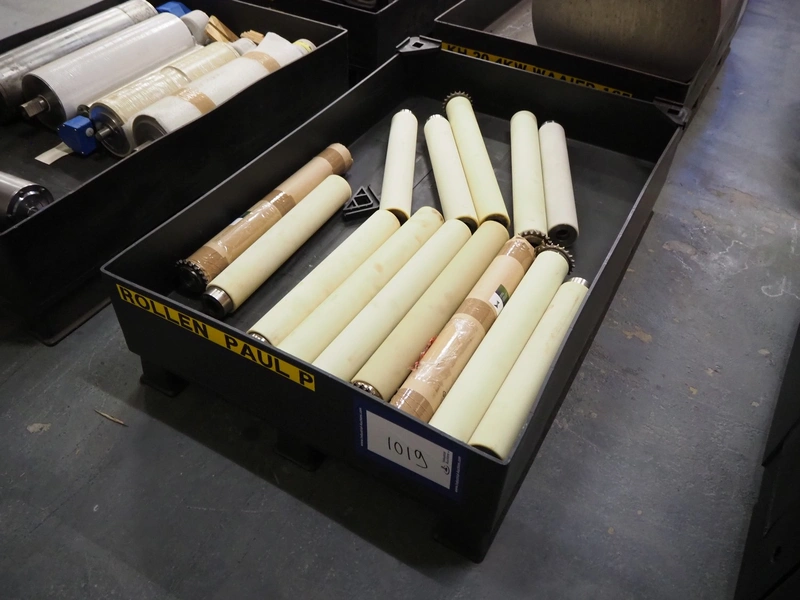 Pallet with rollers, roller width: 450 mm and 540 mm, total dimensions: 1200 mm x 800 mm x 270 mm.