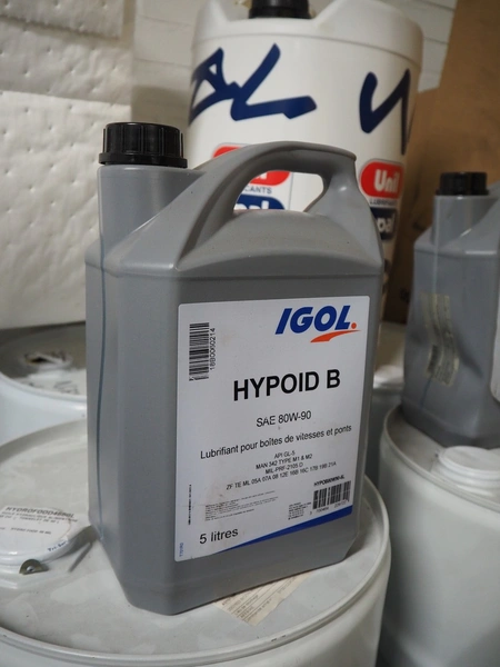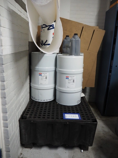 Plastic drip tray with UNIL OPAL abd IGOL lubricants, dimensions drip tray: 1200 mm x 800 mm x 400 mm.
