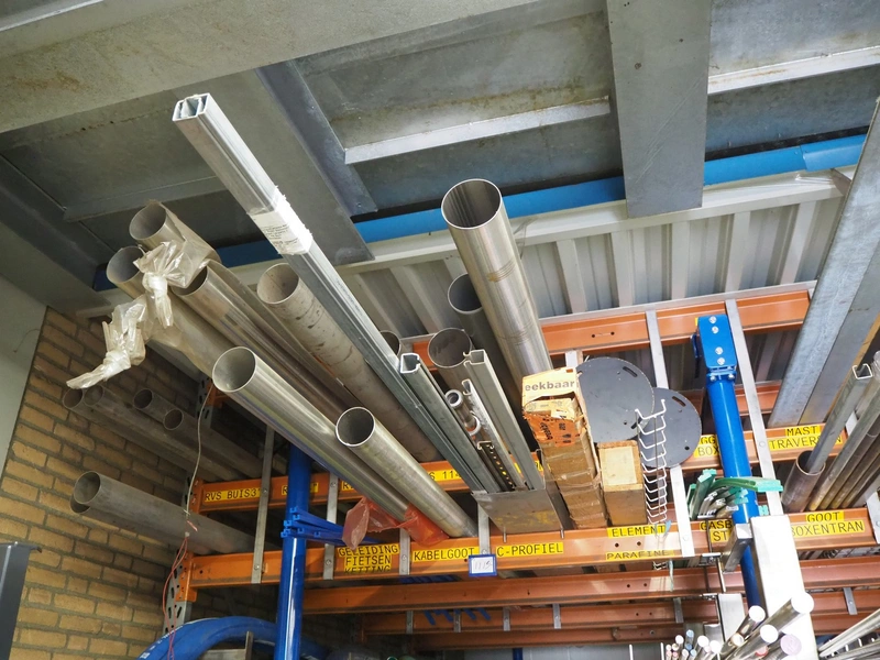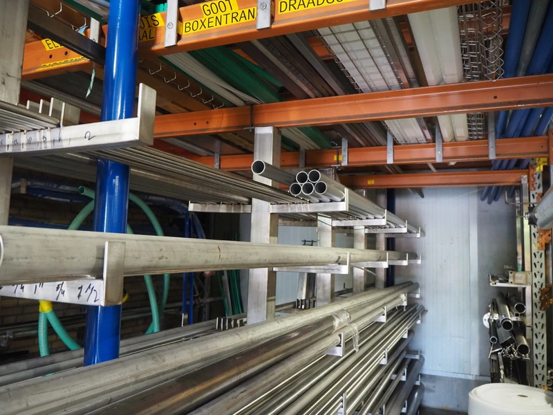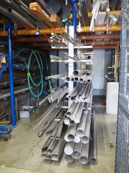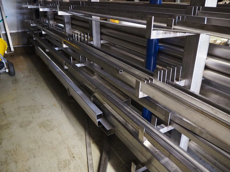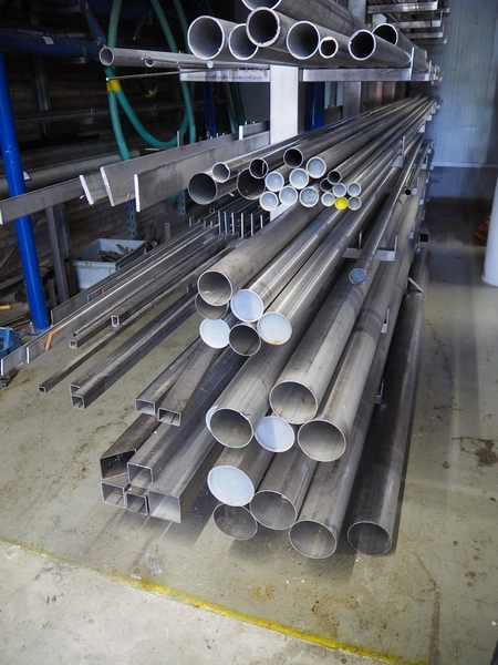 3 racks with large amount of s/s piping's and frames, various shapes and sizes.