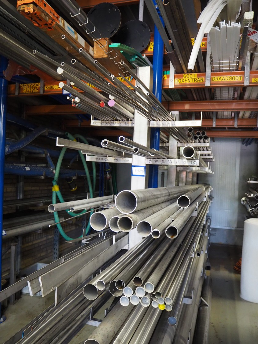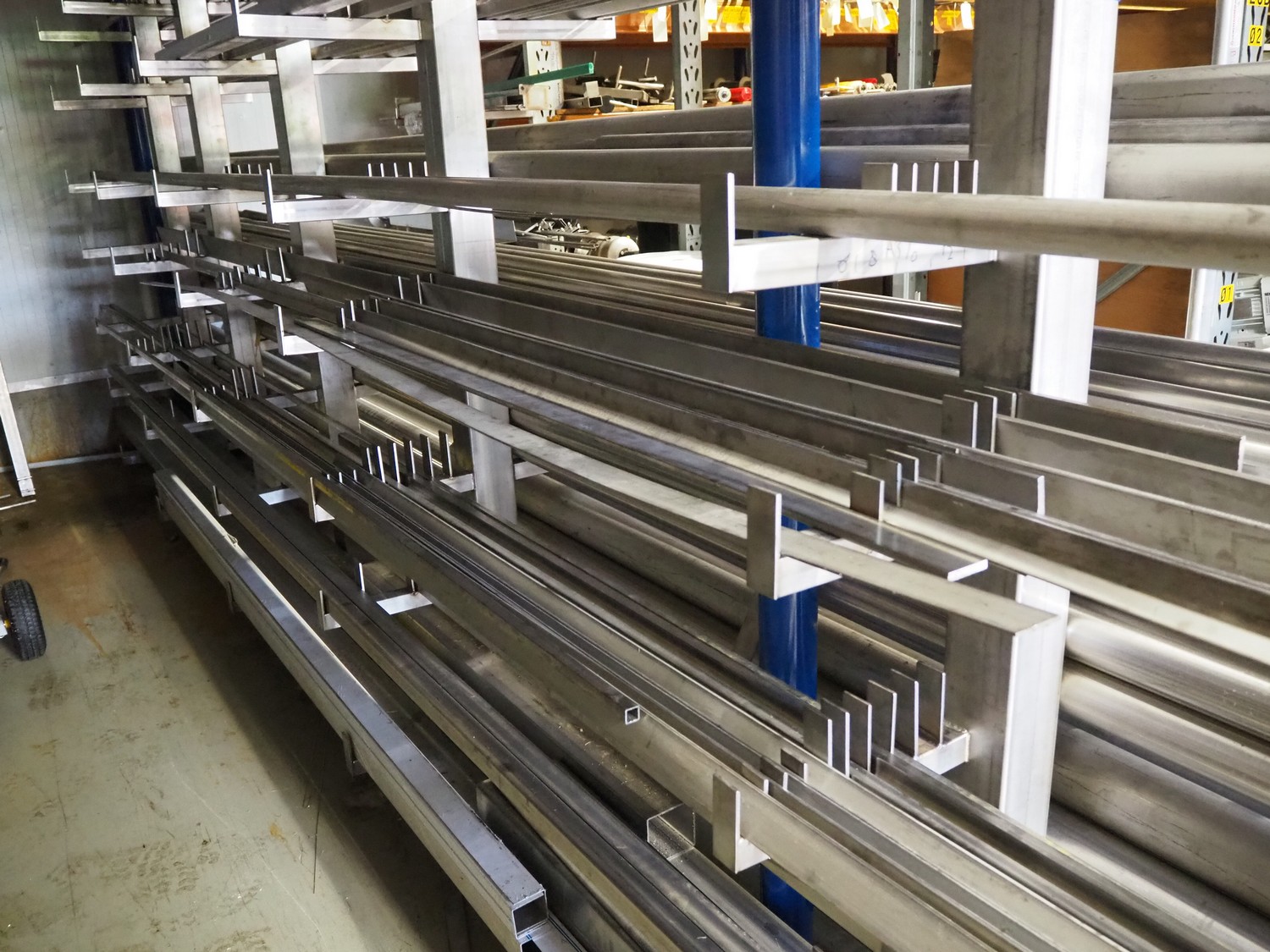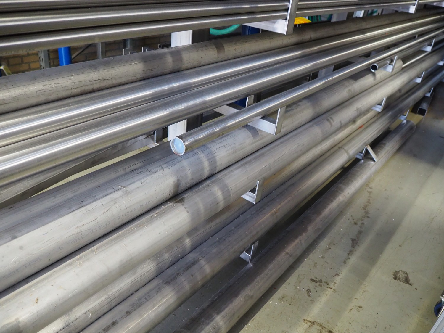 3 racks with large amount of s/s piping's and frames, various shapes and sizes.