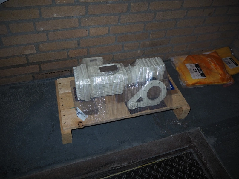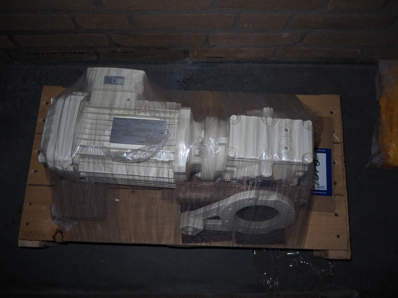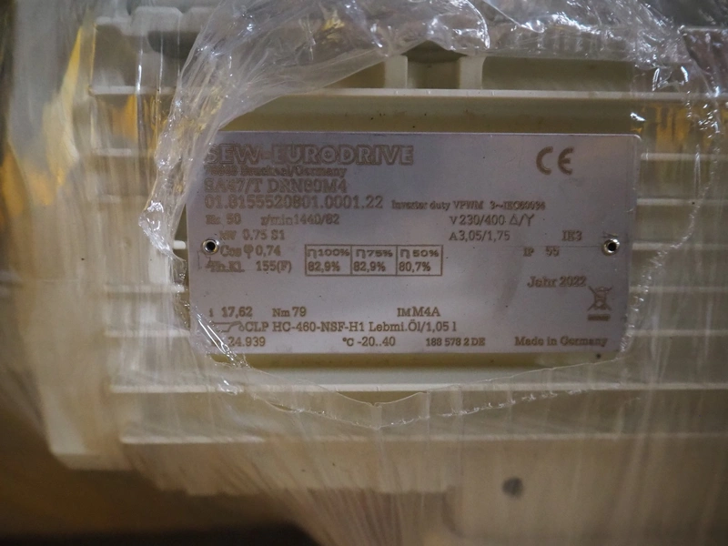 Pallet with SEW-Eurodrive motor, dimensions: 450 mm x 200 mm x 170 mm.