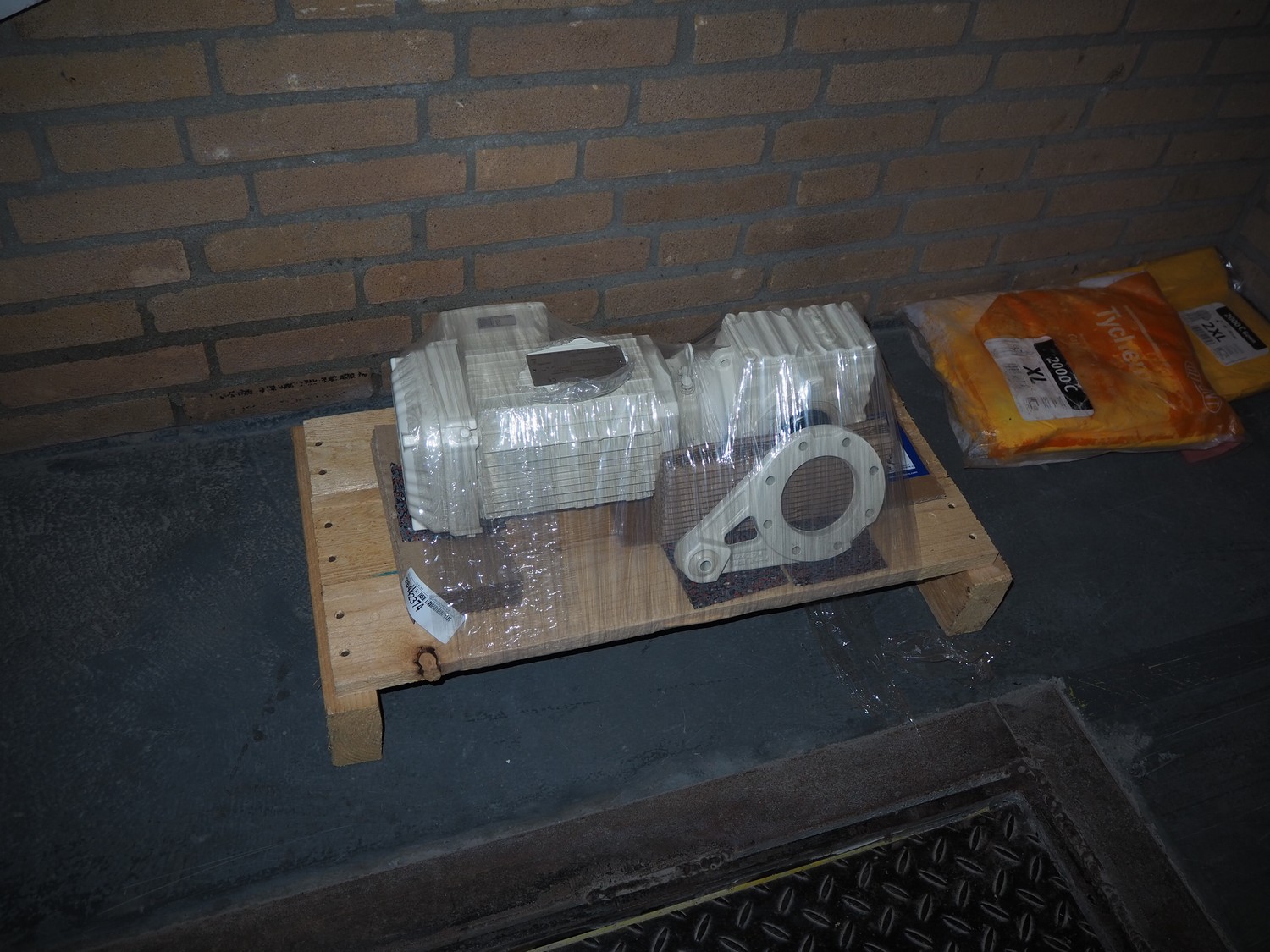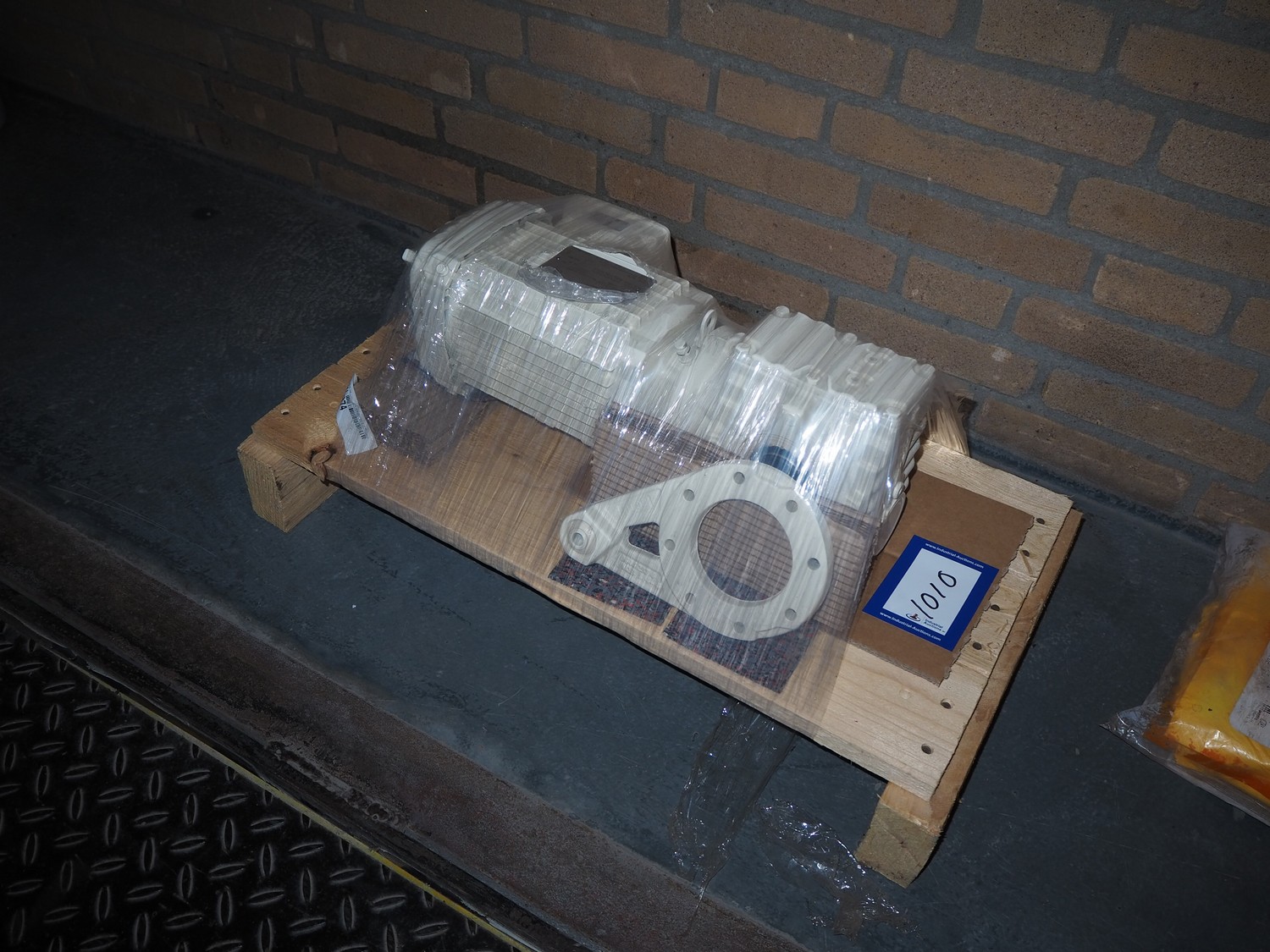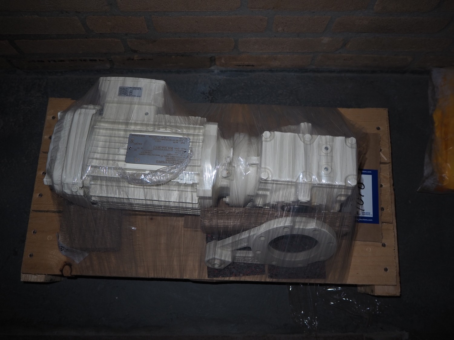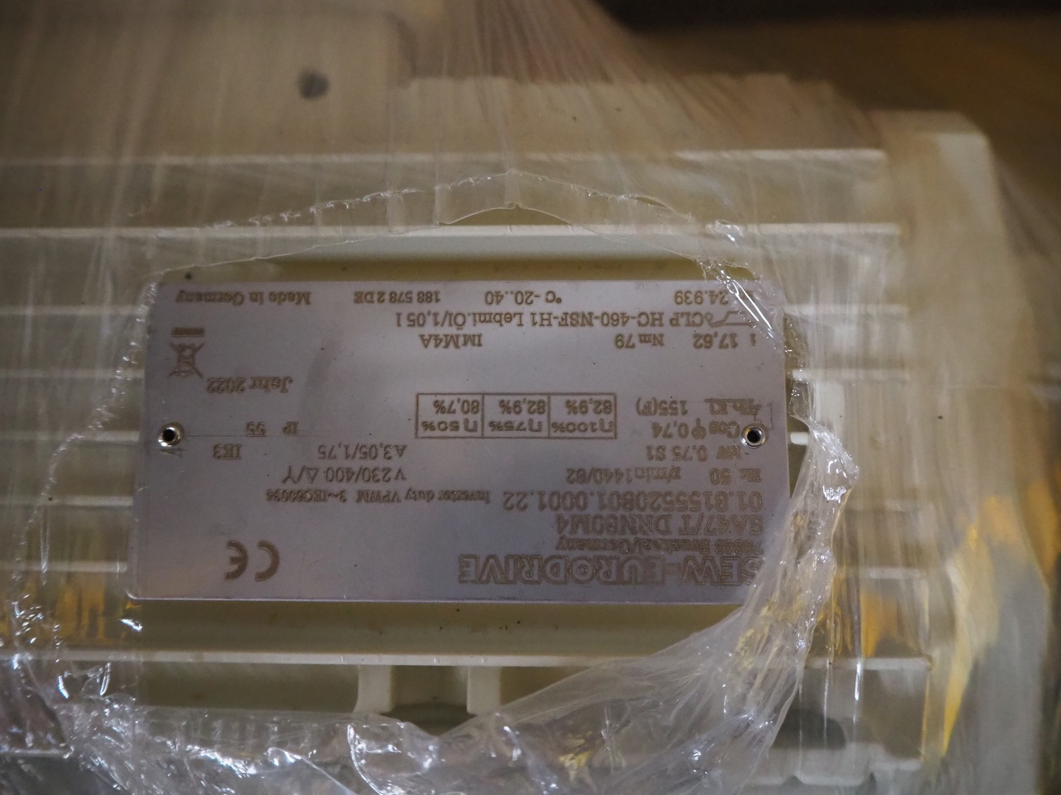 Pallet with SEW-Eurodrive motor, dimensions: 450 mm x 200 mm x 170 mm.