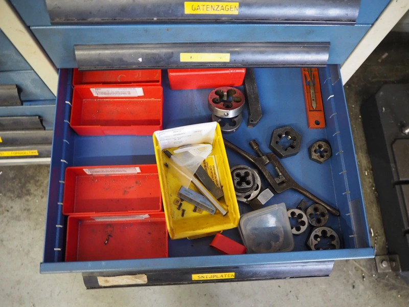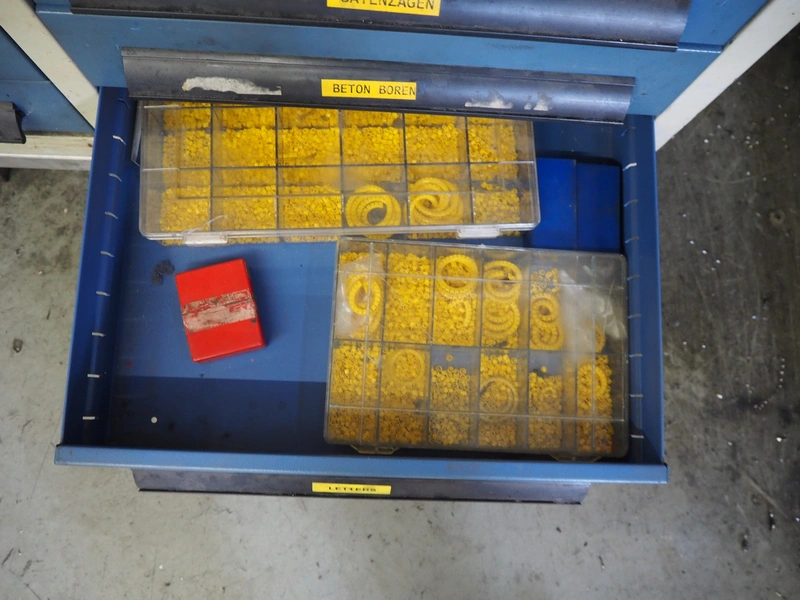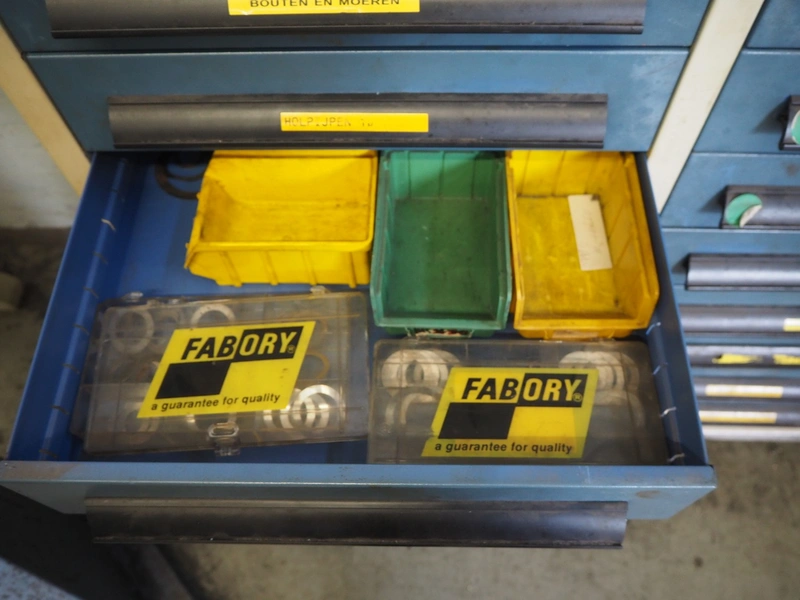 Steel tool cabinet, 24 drawers, dimensions: 1500 mm x 500 mm x 1100 mm. Including content.