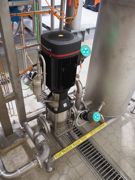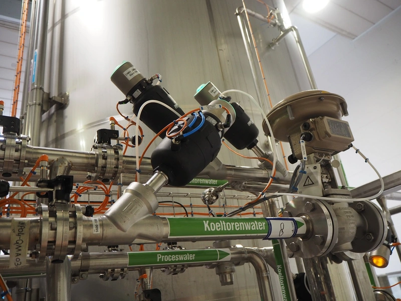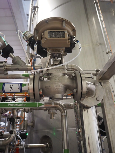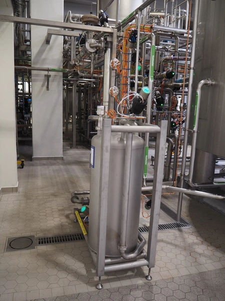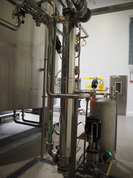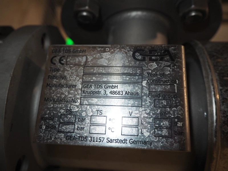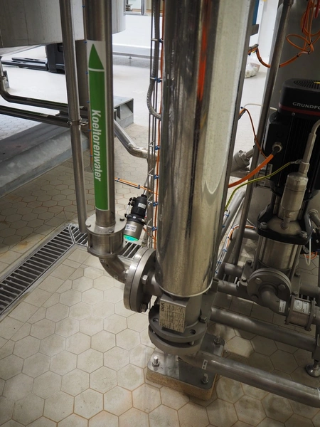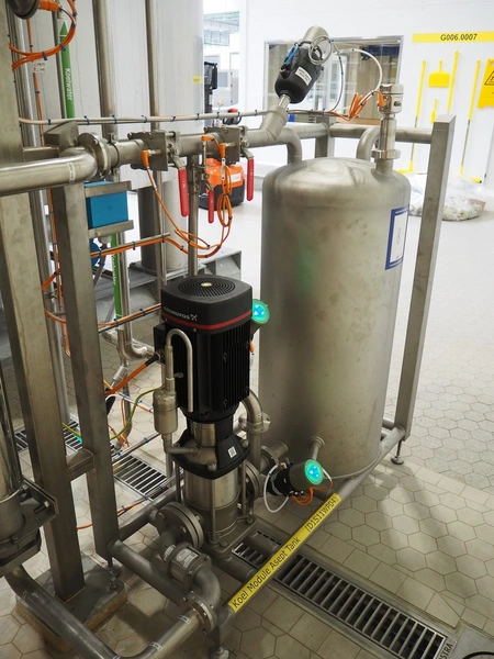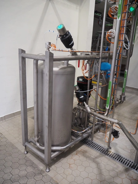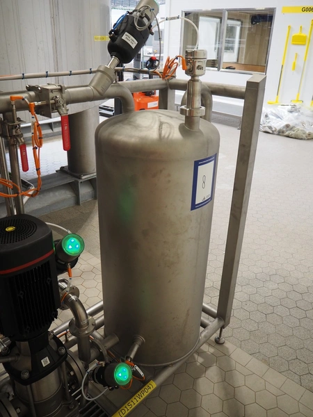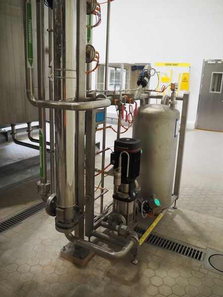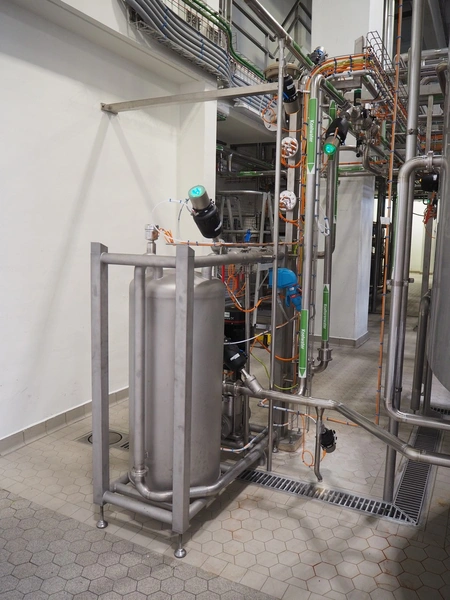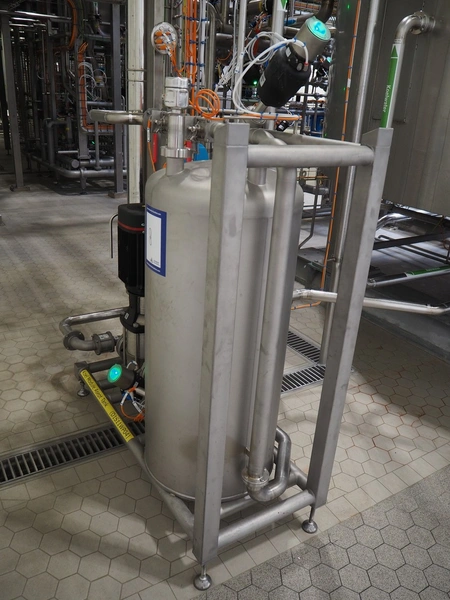 GEA TDS GmbH s/s skid with cooling module for aseptic tank system, total dimensions: 1800 mm x 800 mm x 3000 mm, including various valves.