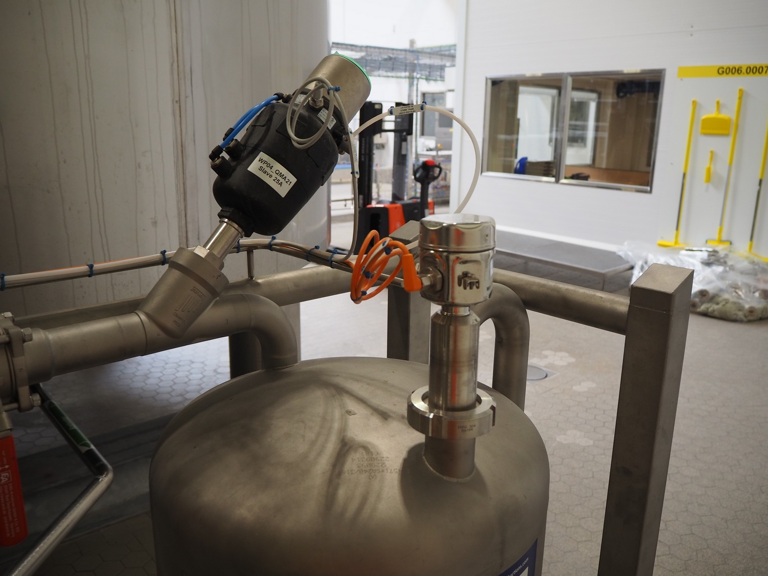 GEA TDS GmbH s/s skid with cooling module for aseptic tank system, total dimensions: 1800 mm x 800 mm x 3000 mm, including various valves.