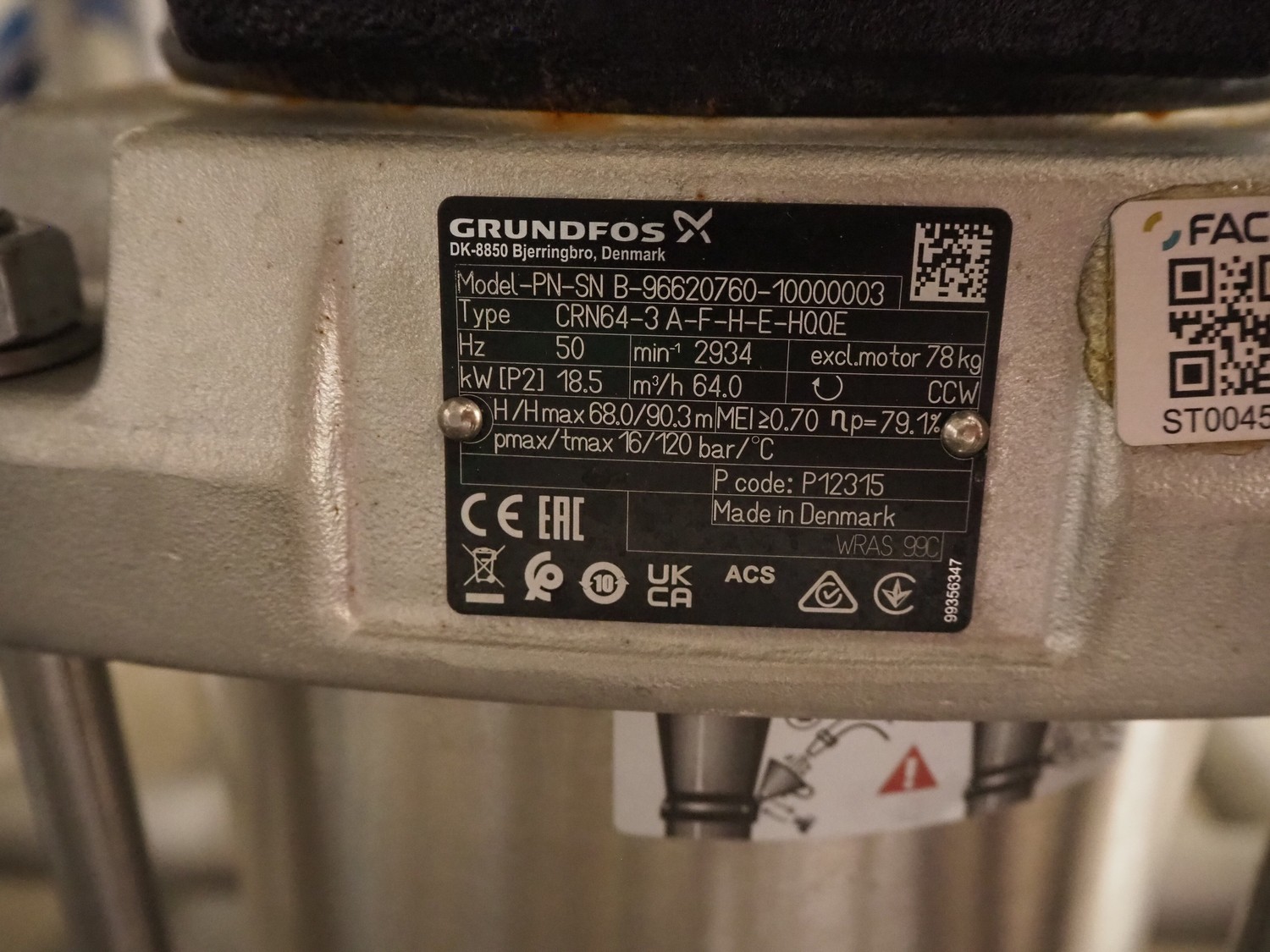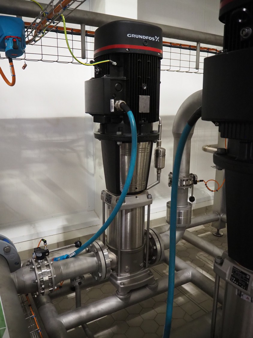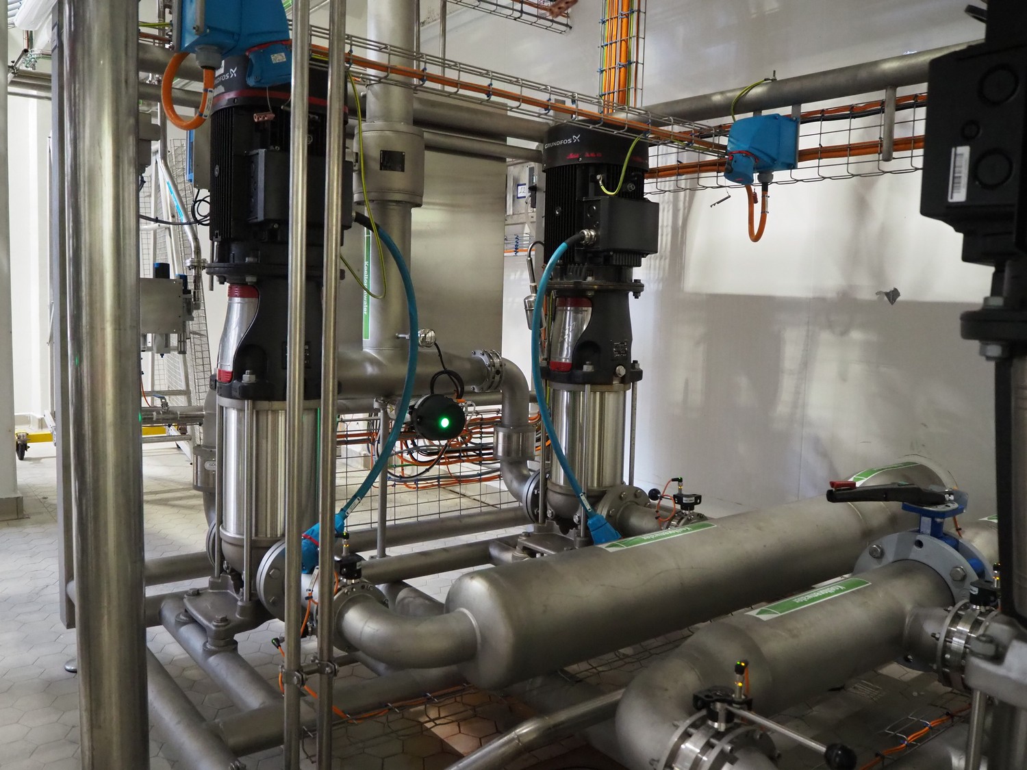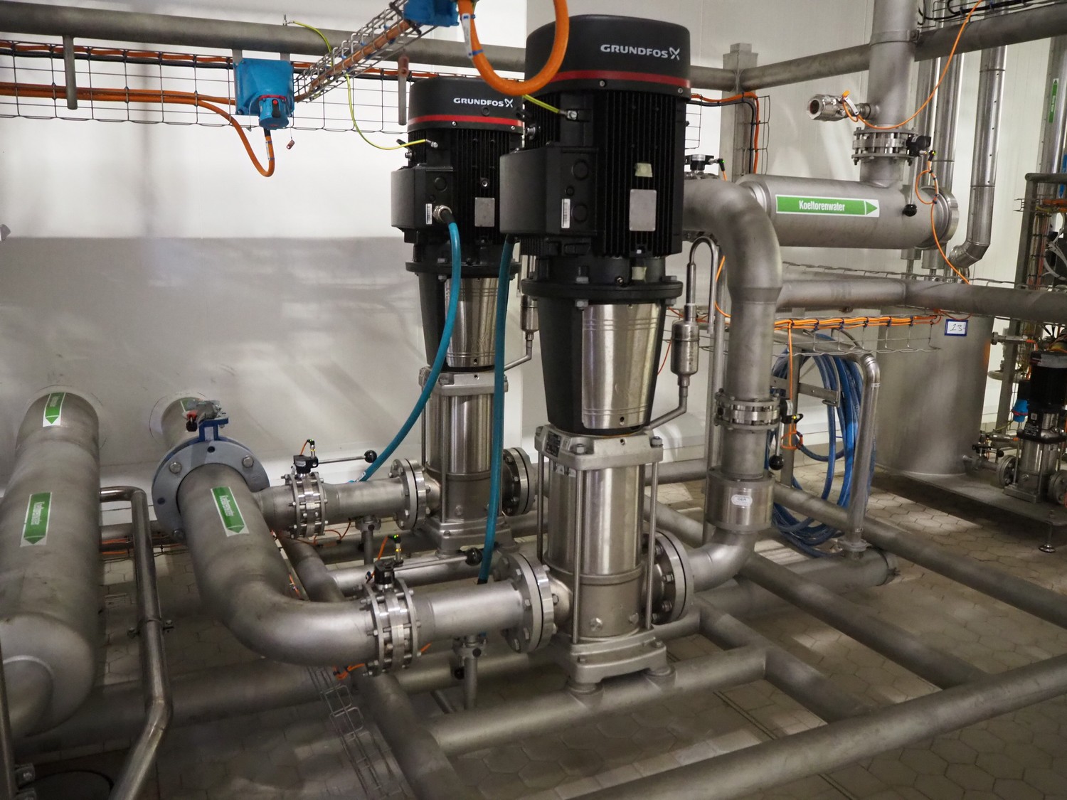 GEA TDS GmbH s/s skid with pump unit for cooling tower water, type: UHT direkt Anlage UA, serial number: 00A2957 =UA+A05, year of construction: 2023, 230 V, 1 Ph, 50 Hz, 24 V DC, 20 A, consisting of: 4 Grundfos centrifugal pumps, various flowmeters and valves, total dimensions: 4400 mm x 2000 mm x 2000 mm.