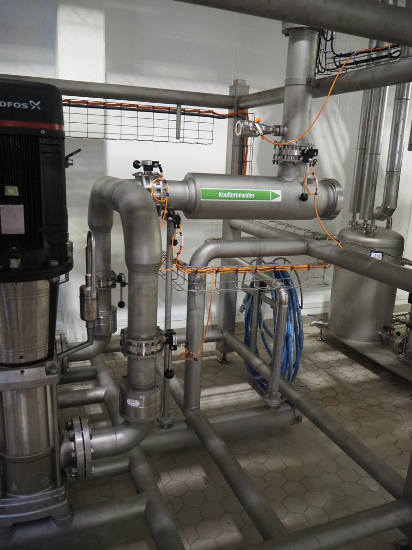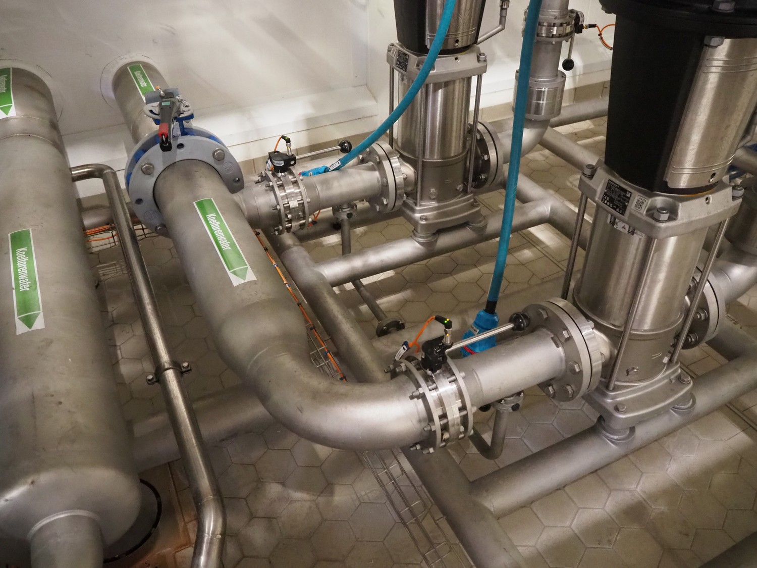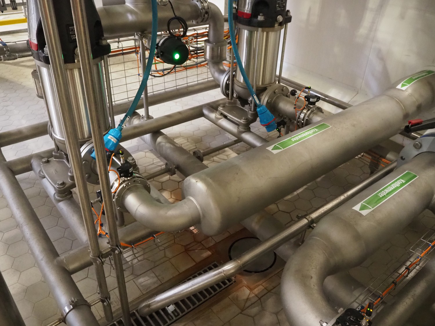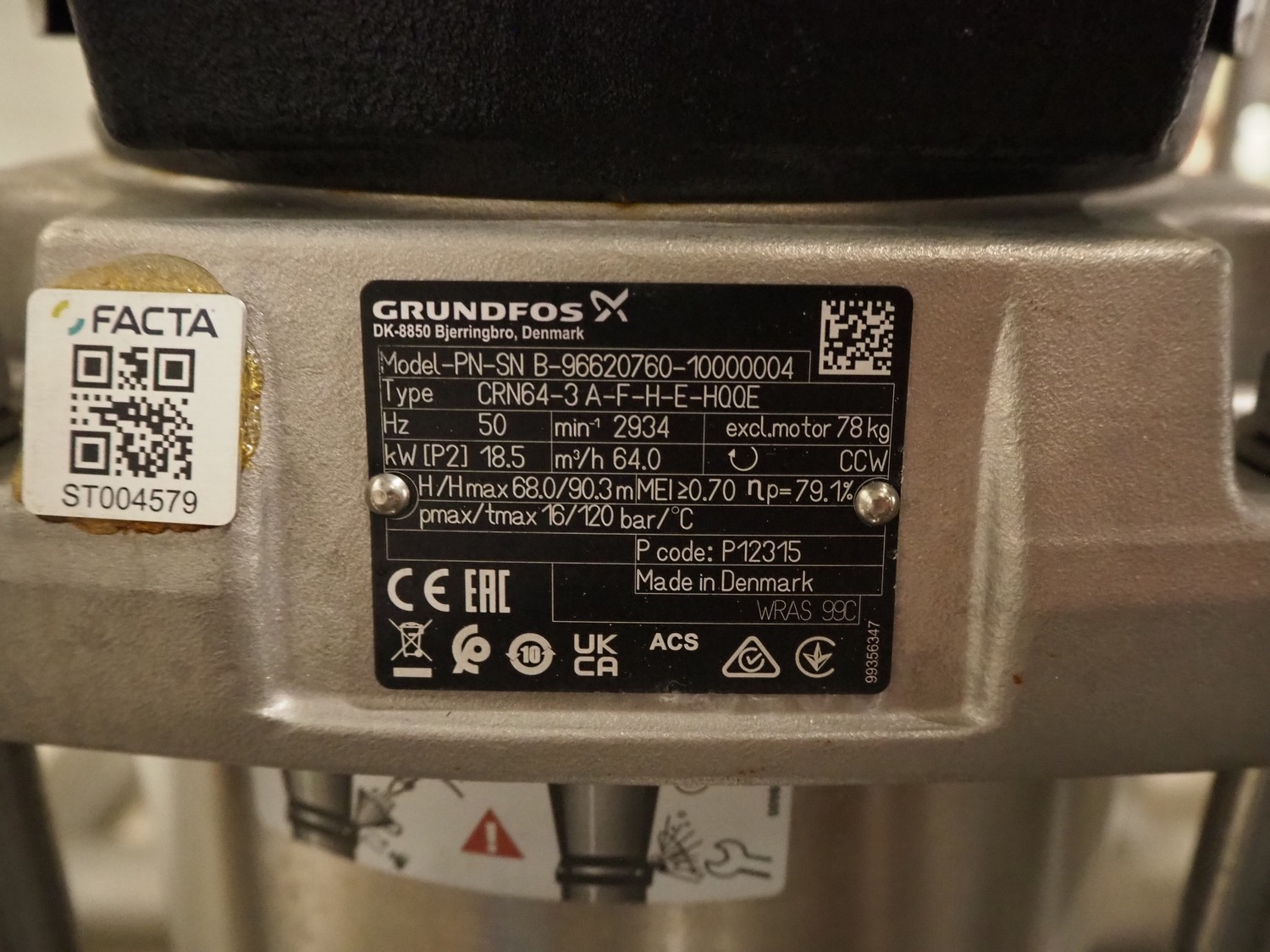 GEA TDS GmbH s/s skid with pump unit for cooling tower water, type: UHT direkt Anlage UA, serial number: 00A2957 =UA+A05, year of construction: 2023, 230 V, 1 Ph, 50 Hz, 24 V DC, 20 A, consisting of: 4 Grundfos centrifugal pumps, various flowmeters and valves, total dimensions: 4400 mm x 2000 mm x 2000 mm.