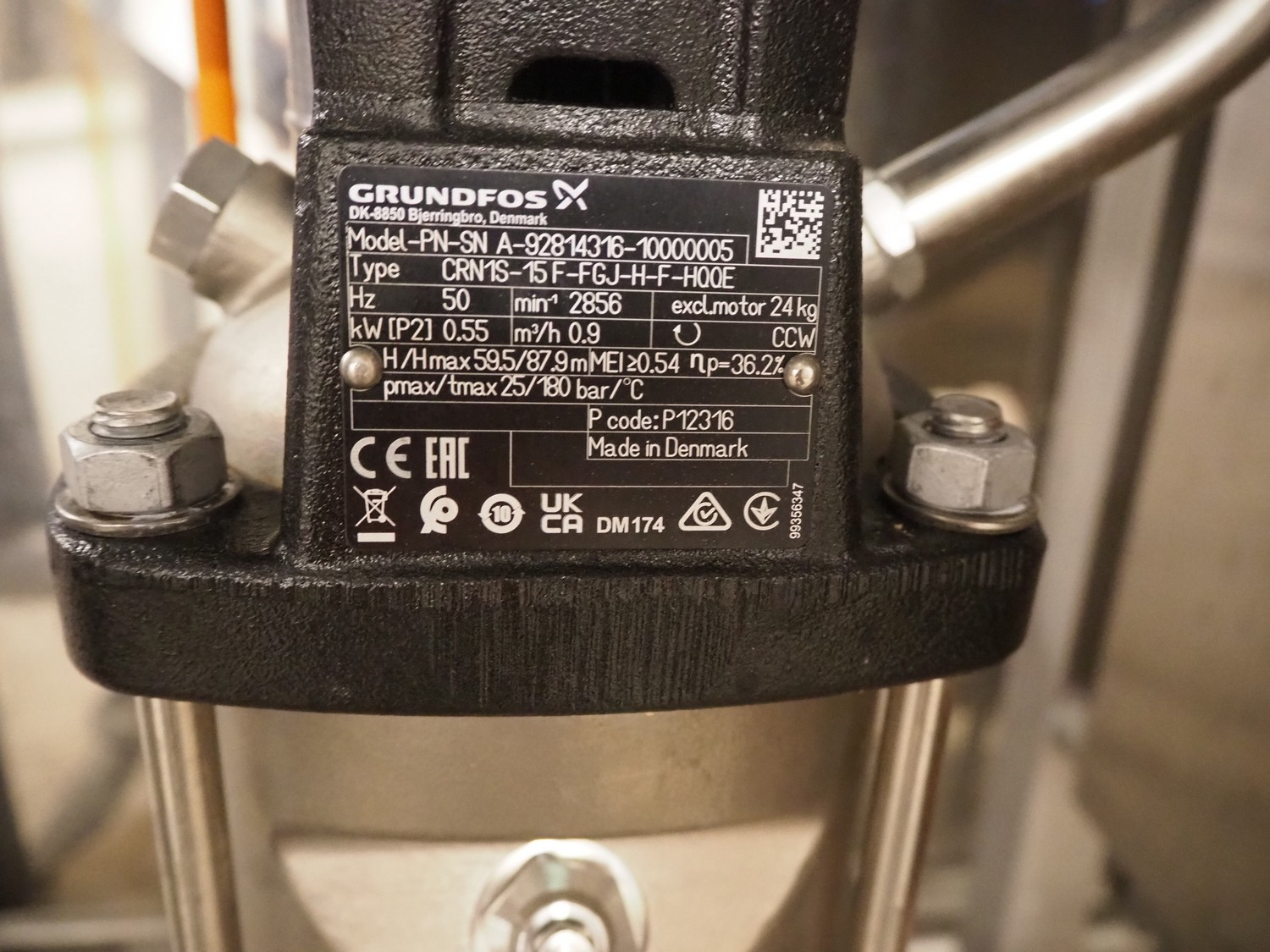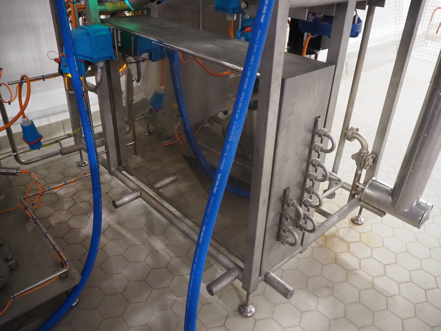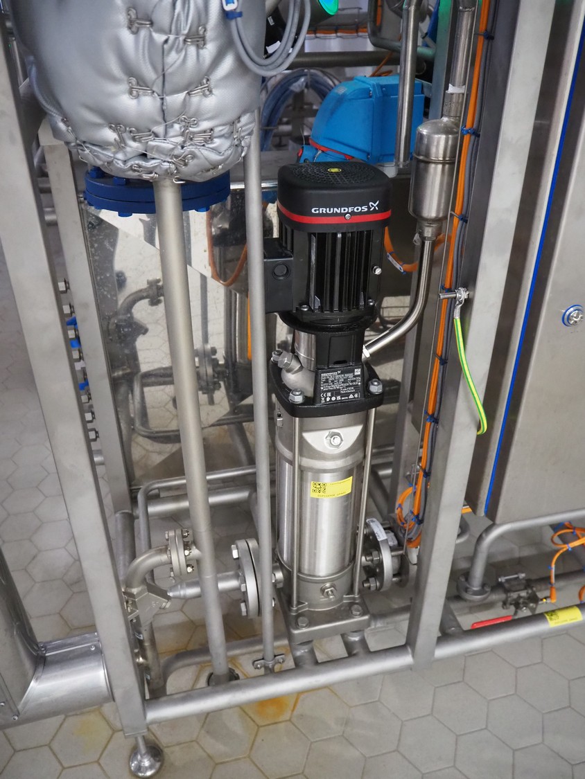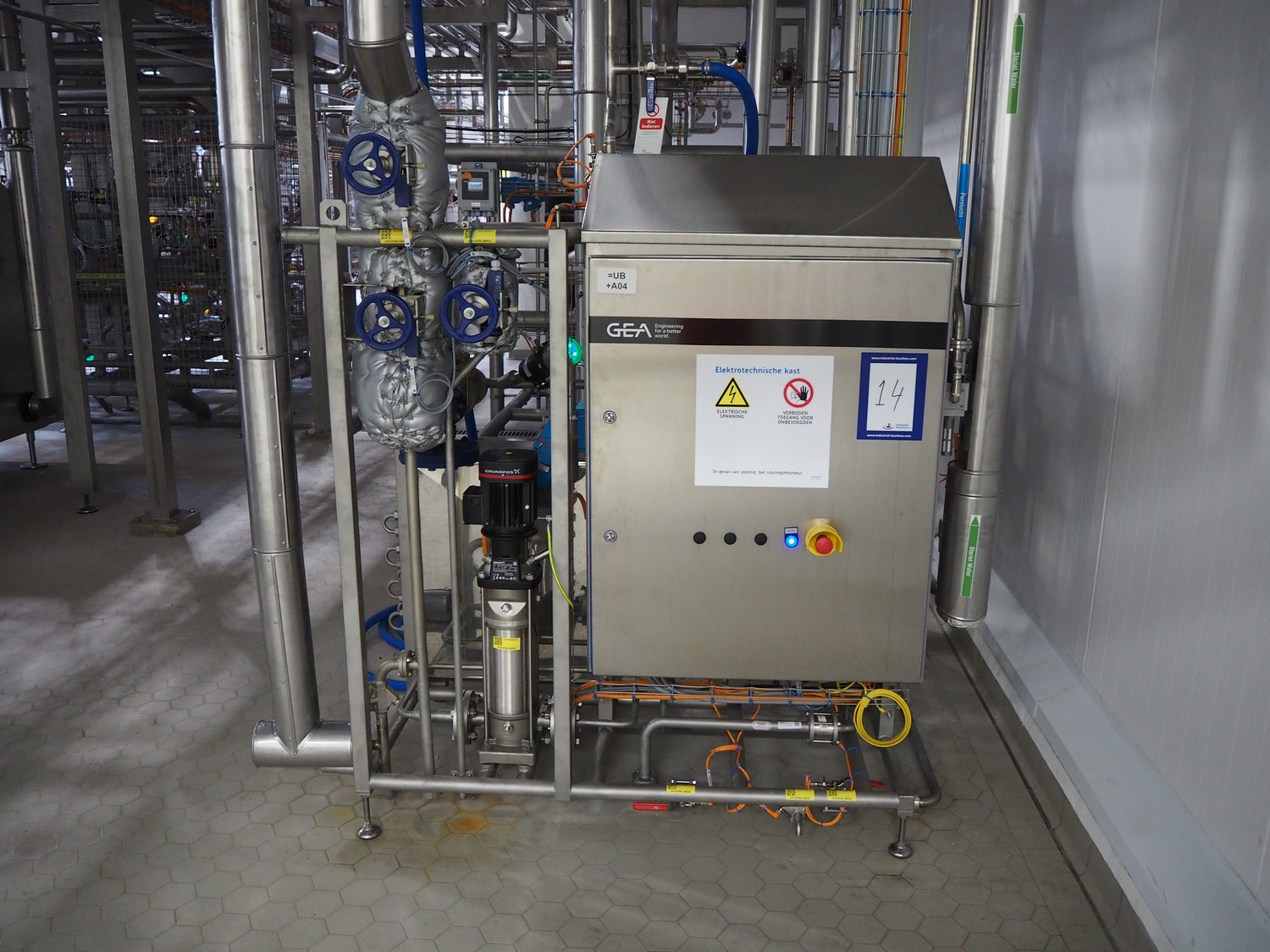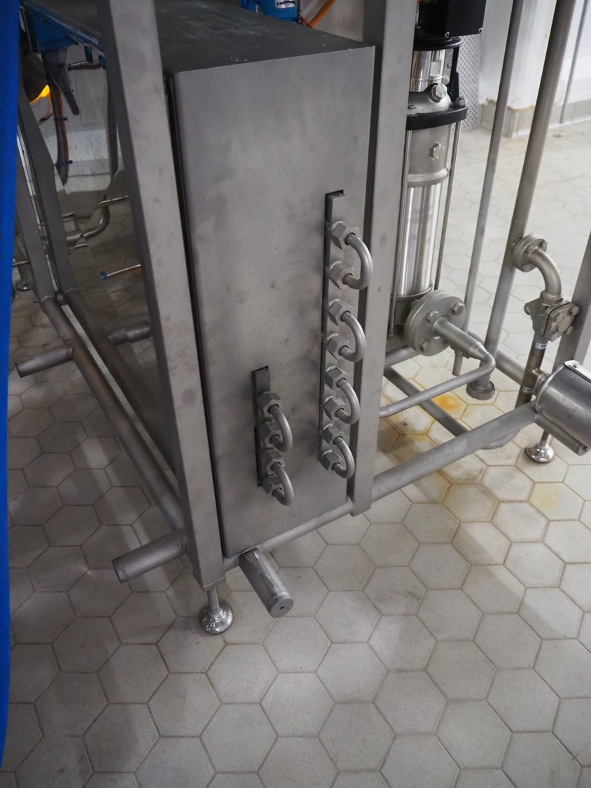 GEA TDS GmbH sterile softened water module, type: UHT direkt Anlage UA, serial number: 00A2957 =UA+A04, year of construction: 2023, 230 V, 1 Ph, 50 Hz, 24 V DC, 20 A, consisting of: Grundfos centrifugal pump, heat exchanger, various valves and flowmeters, total dimensions: 1500 mm x 1000 mm x 1800 mm.
