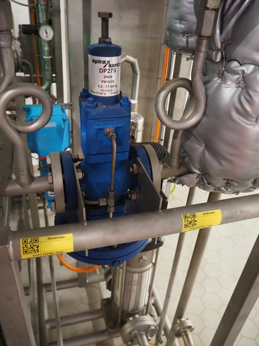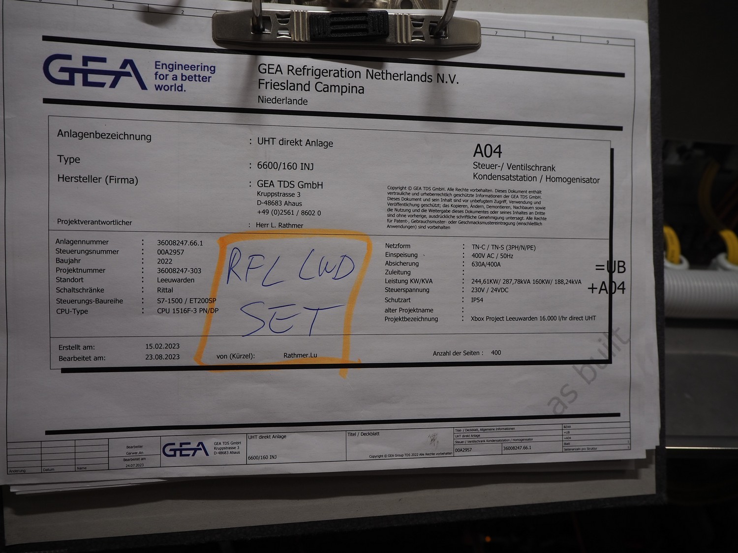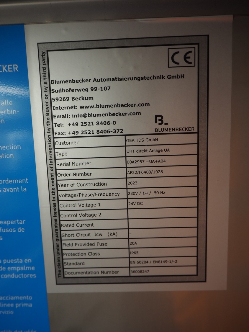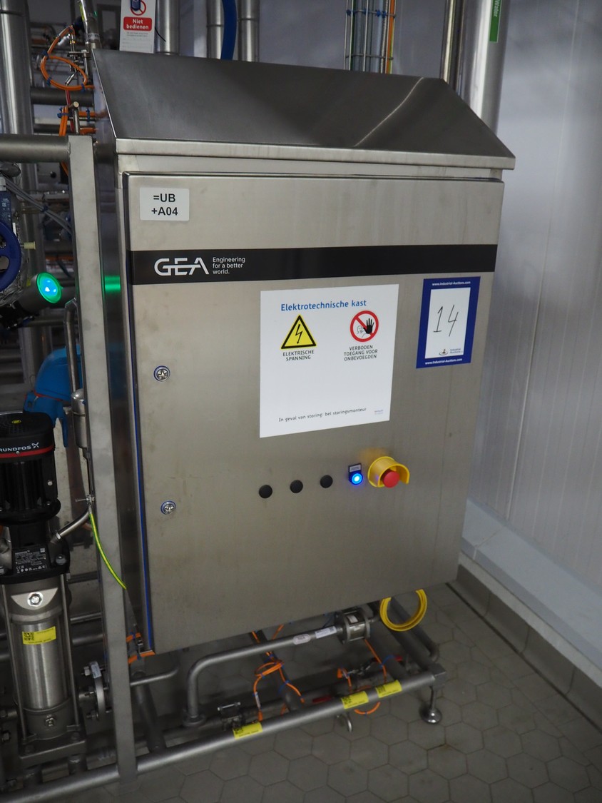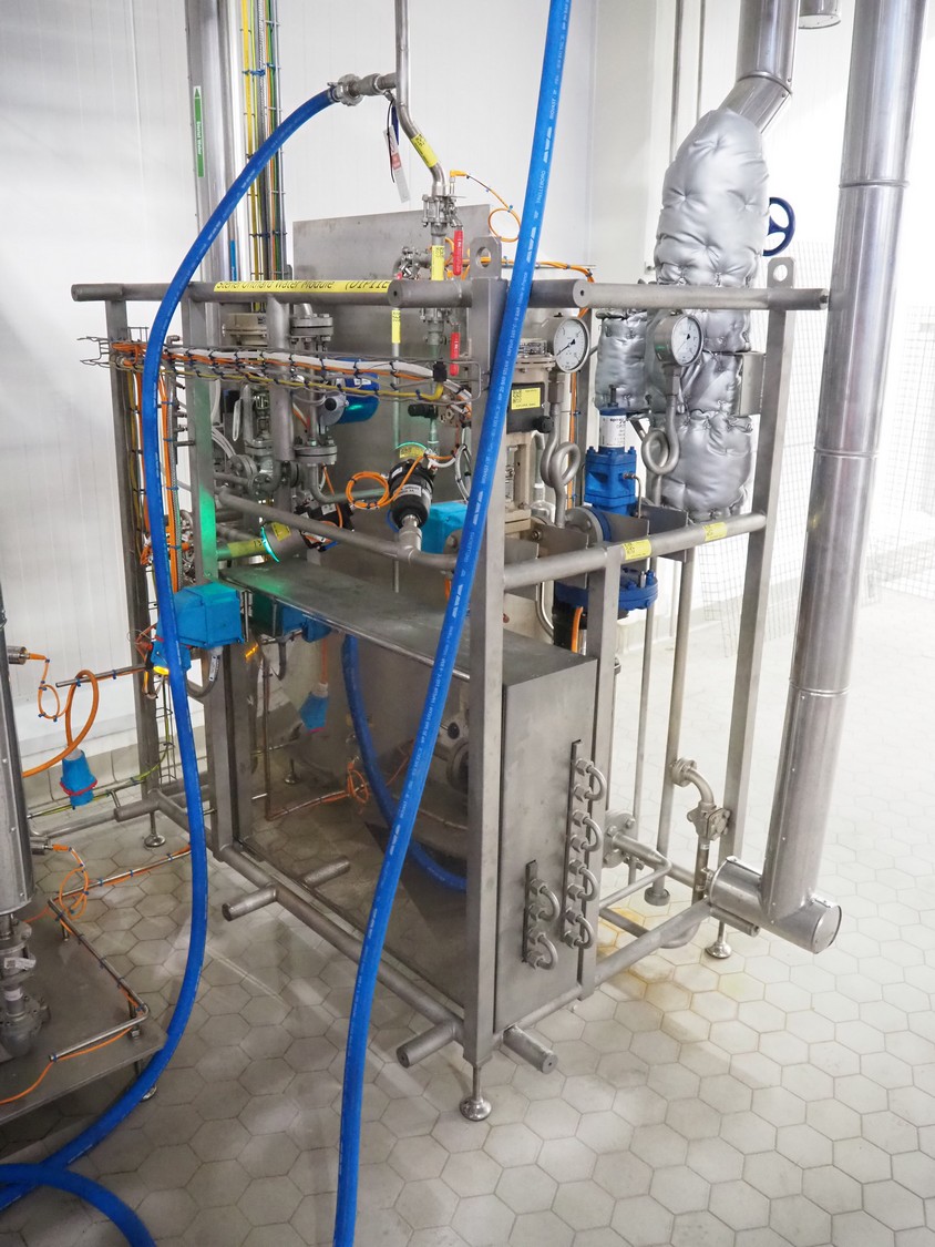 GEA TDS GmbH sterile softened water module, type: UHT direkt Anlage UA, serial number: 00A2957 =UA+A04, year of construction: 2023, 230 V, 1 Ph, 50 Hz, 24 V DC, 20 A, consisting of: Grundfos centrifugal pump, heat exchanger, various valves and flowmeters, total dimensions: 1500 mm x 1000 mm x 1800 mm.