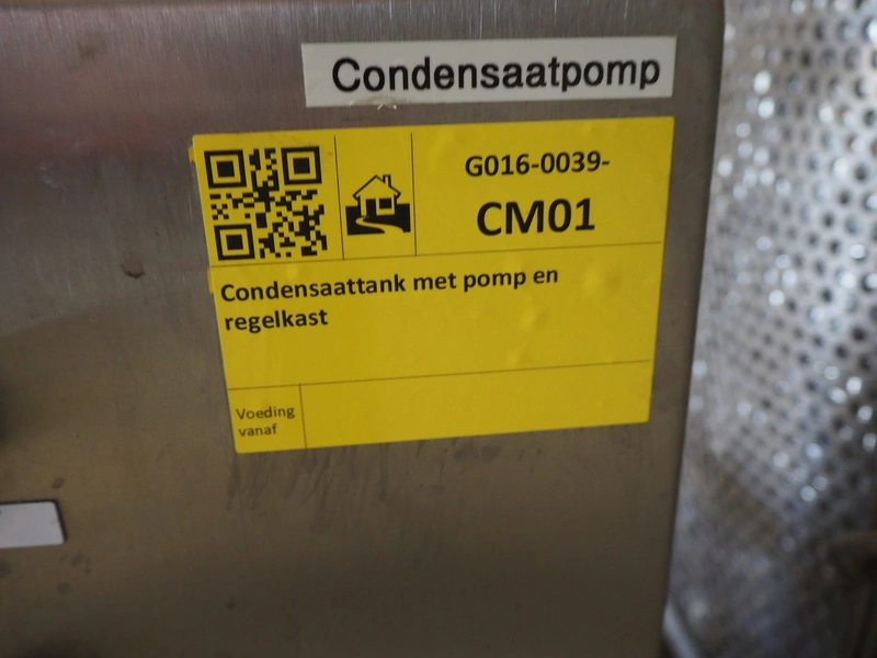 Friamco BV condensate unit, year of construction: 2016, temperature: 98 °C, 230 V, 3 A, dimensions: 1400 mm x 800 mm x 1000 mm.