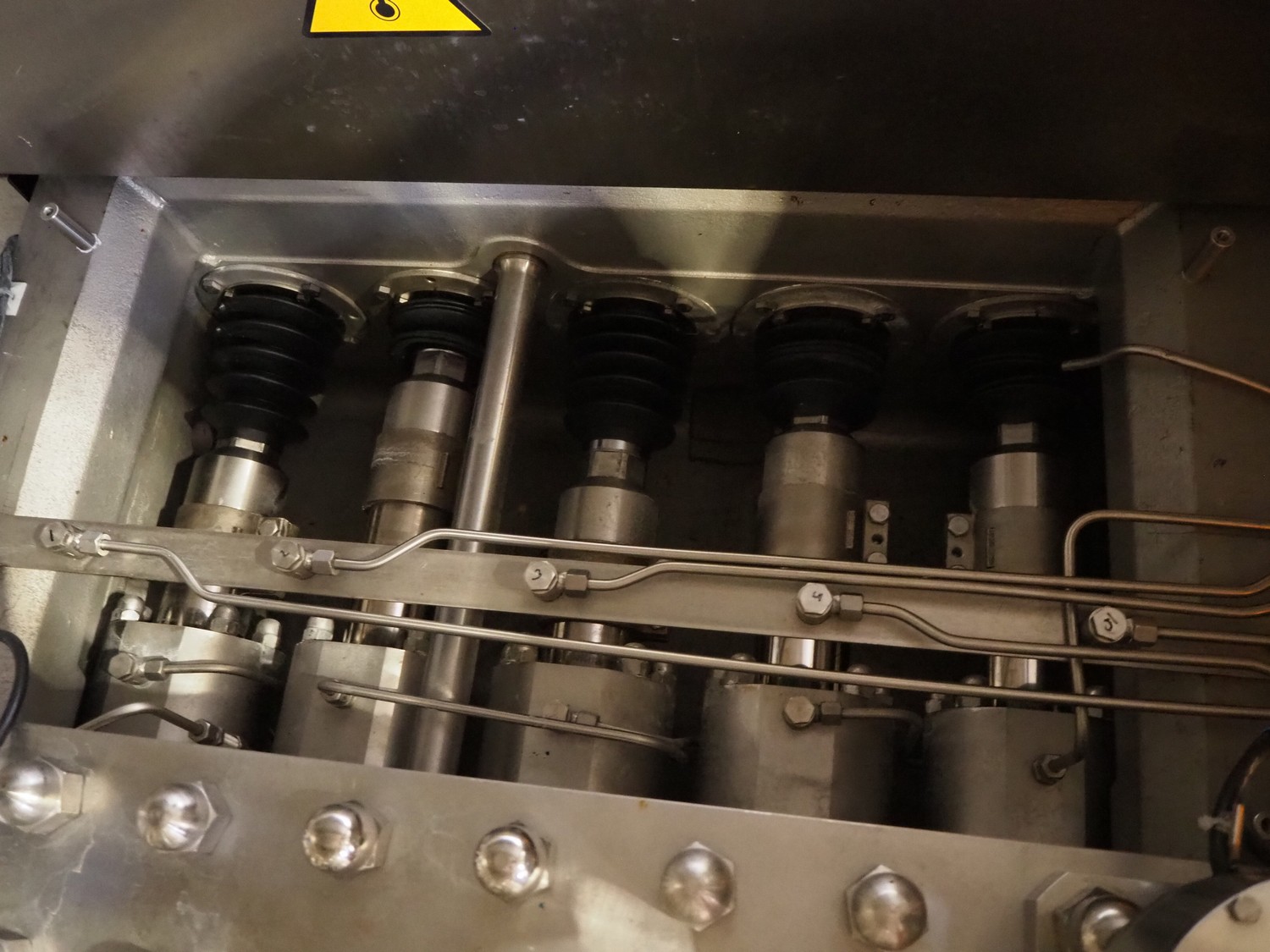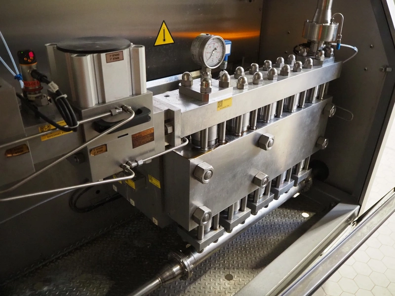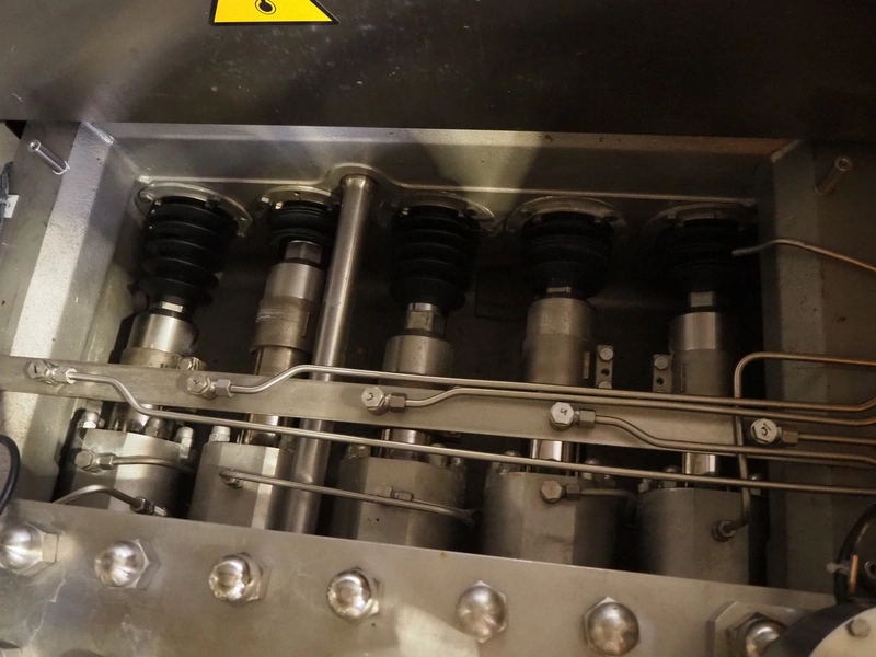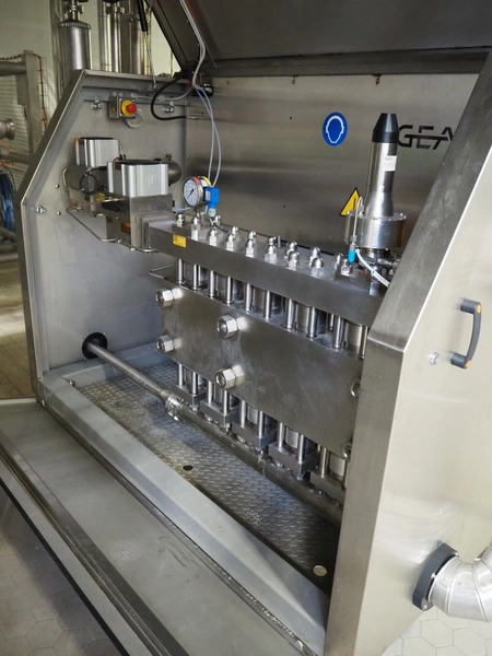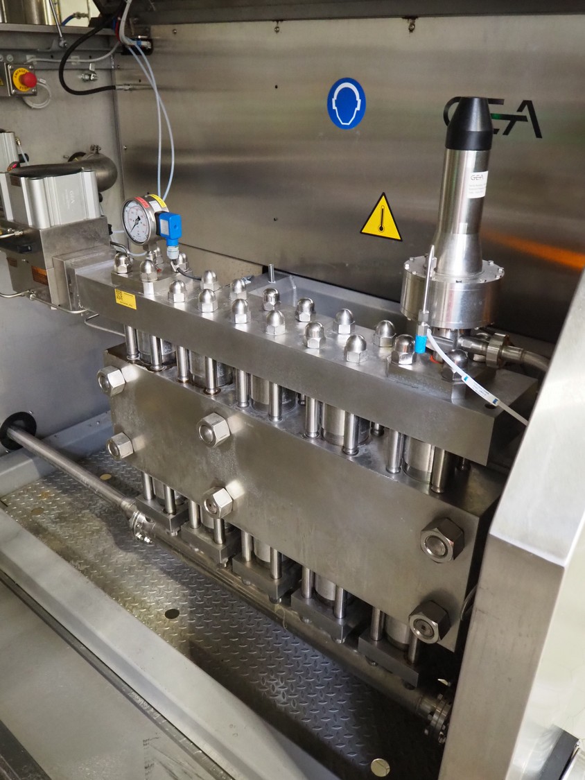 GEA Mechanical Equipment IT S.p.A. homogenizer, type: Ariete Homogenizer 5200, serial number: 18022, year of construction: 2023, maximum pressure: 25 Mpa, rated flow: 18000 dm³/h, dimensions: 1950 mm x 2800 mm x 1800 mm, including switch cabinet with frequency convertor, dimensions: 800 mm x 700 mm x 2150 mm and 2 boxes with tools and parts.