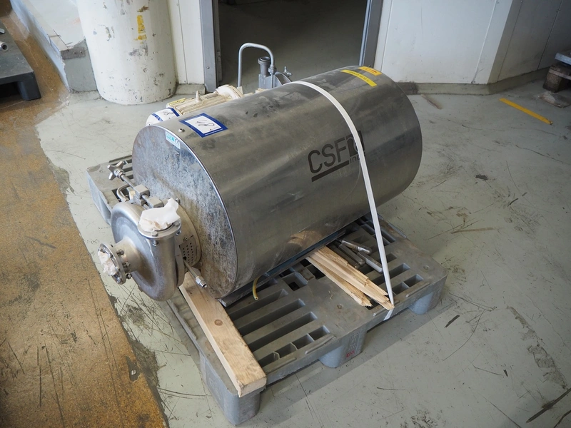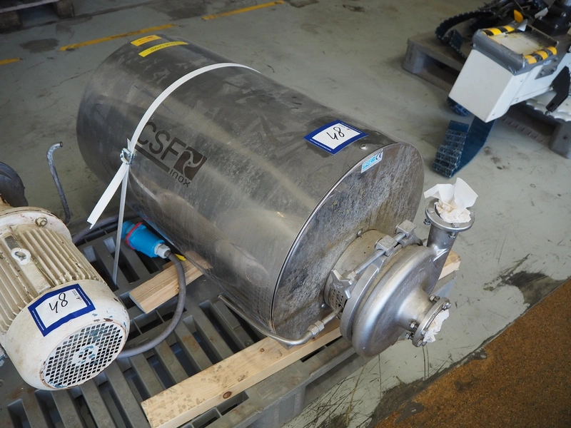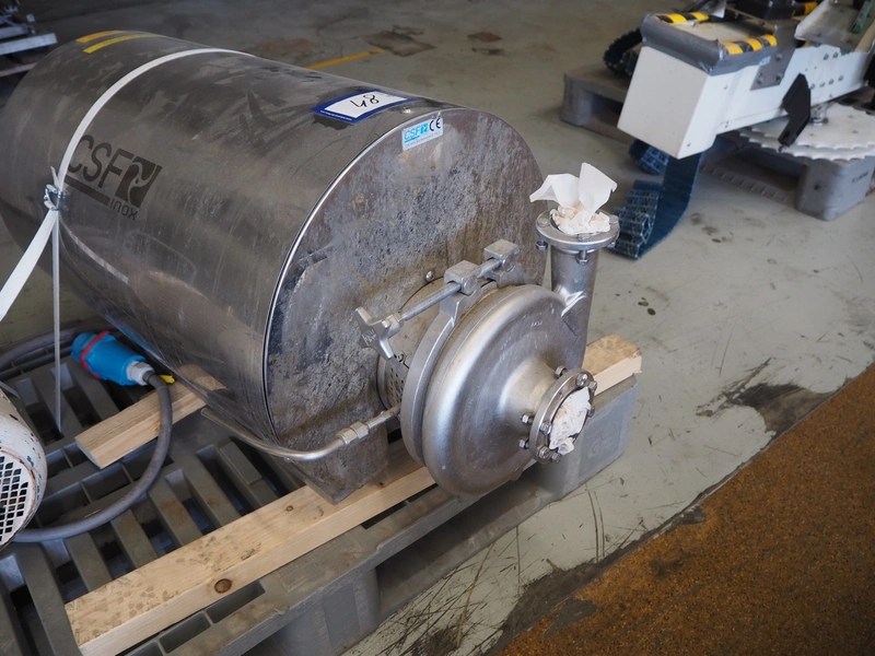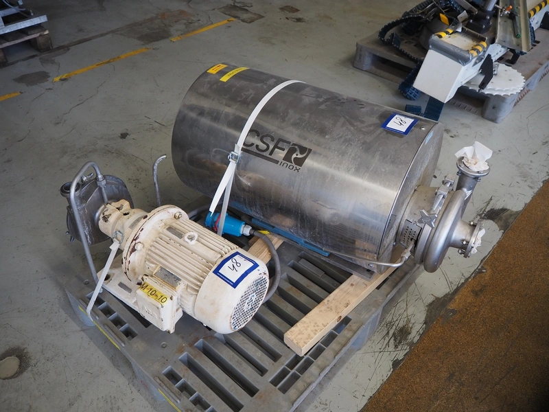 CSF Inox centrifugal pump, dimensions: 1000 mm x 500 mm x 600 mm, Fristam centrifugal pump, type: FP 722 KF, number: 42440555, dimensions: 700 mm x 350 mm x 500 mm.
