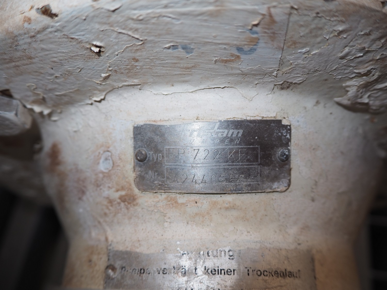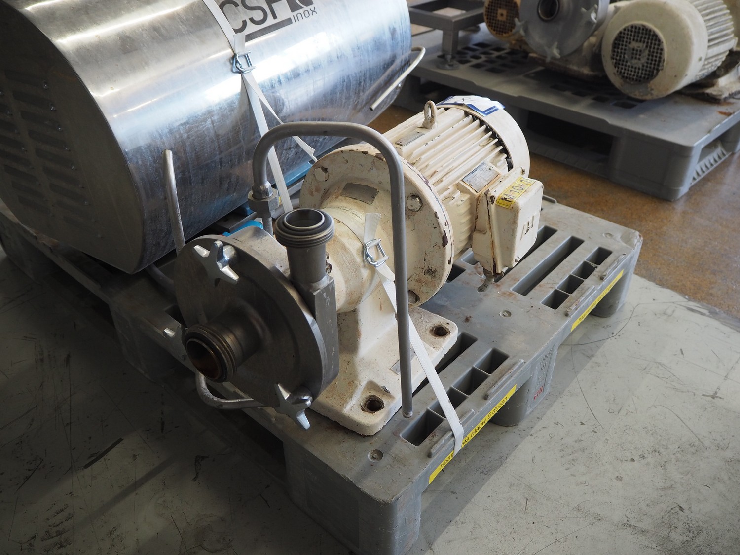 CSF Inox centrifugal pump, dimensions: 1000 mm x 500 mm x 600 mm, Fristam centrifugal pump, type: FP 722 KF, number: 42440555, dimensions: 700 mm x 350 mm x 500 mm.