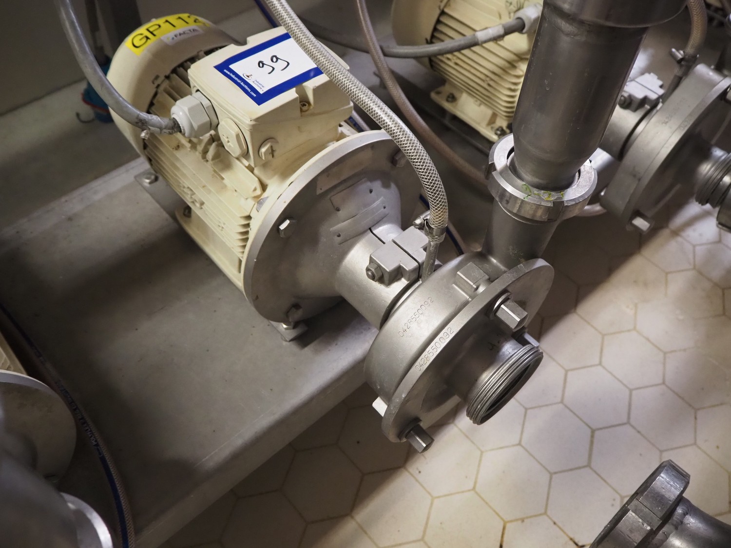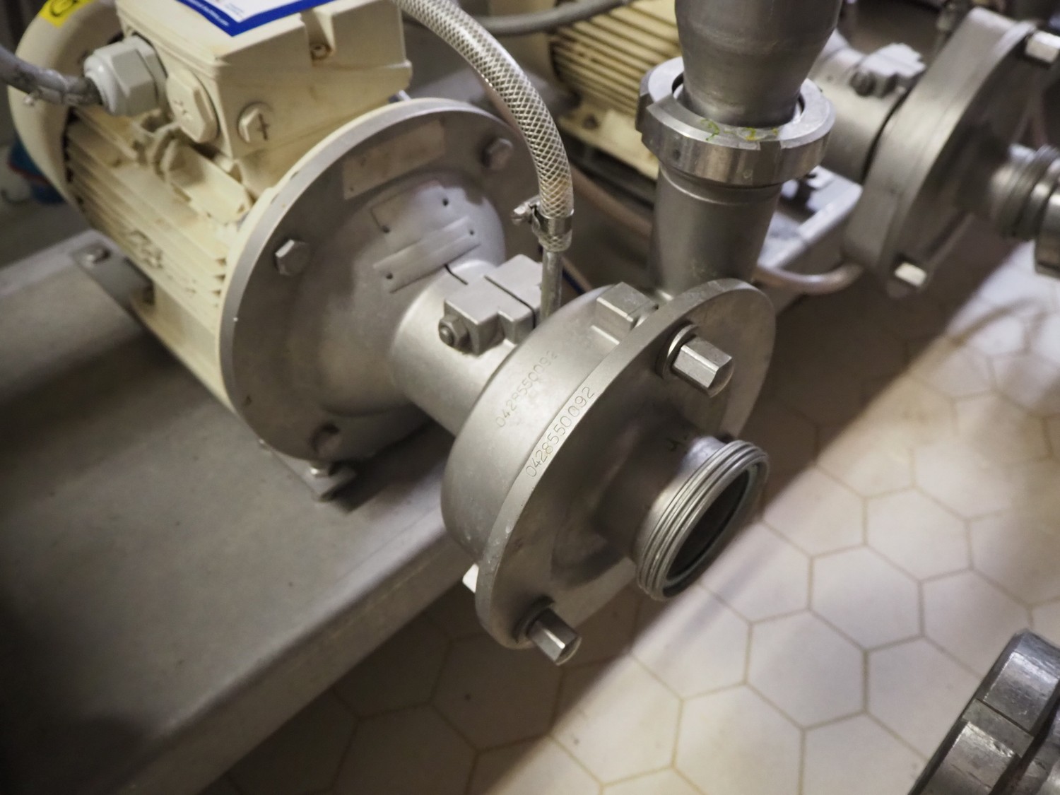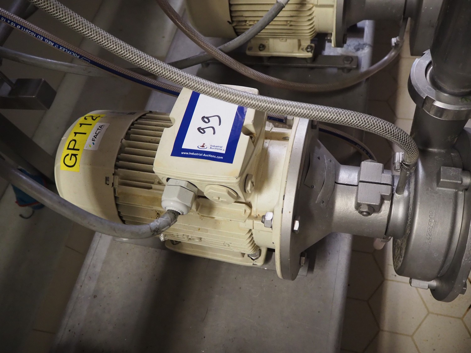 Fristam centrifugal pump, dimensions: 600 mm x 250 mm x 350 mm.