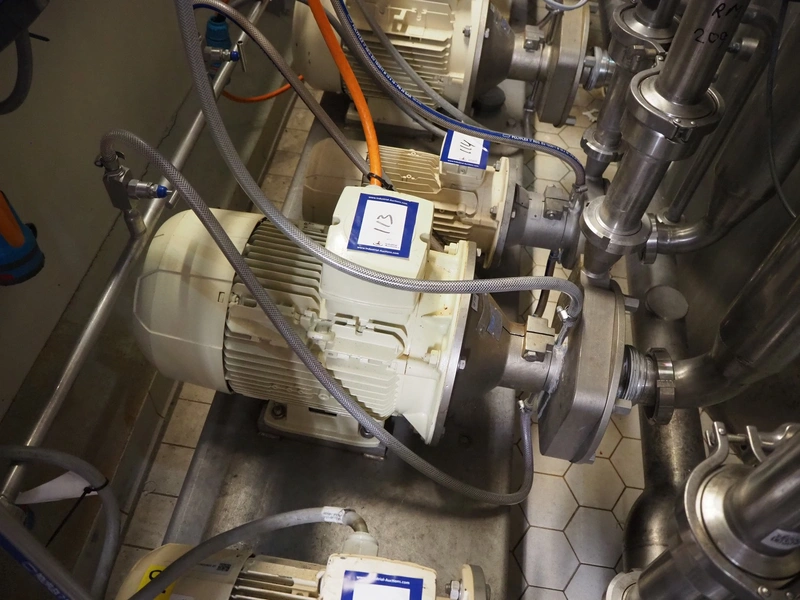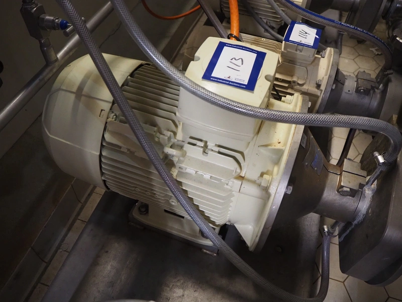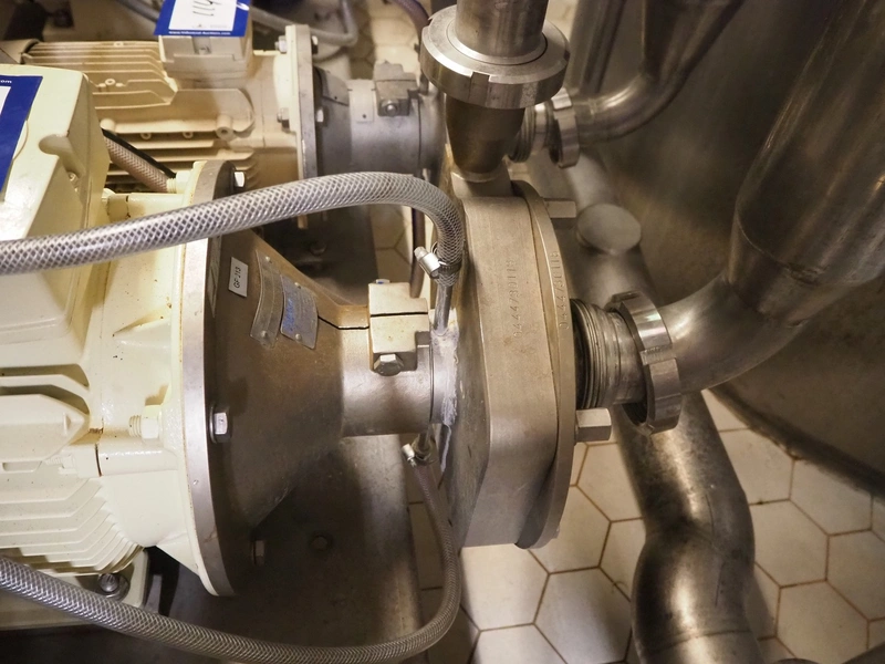 Fristam centrifugal pump, type: FP 742/195 VB, serial number: 0444730118, year of construction: 2021, Q: 8 m³/h, H: 28 m, P: 7.5 kW, N: 2900 l/min, dimensions: 700 mm x 400 mm x 450 mm.