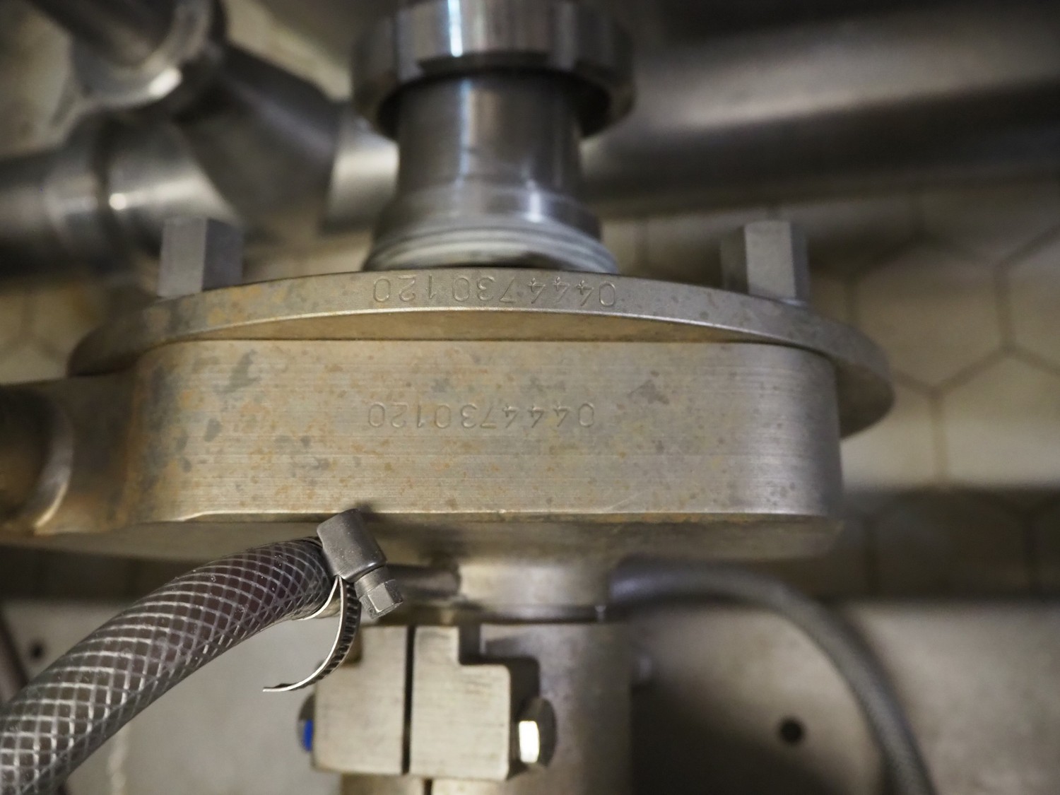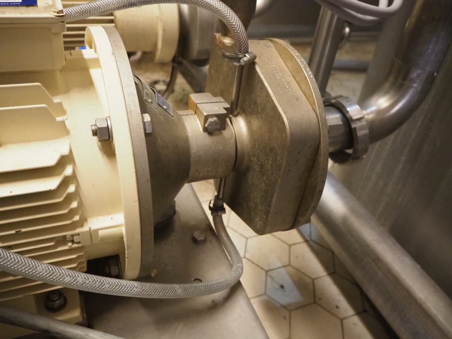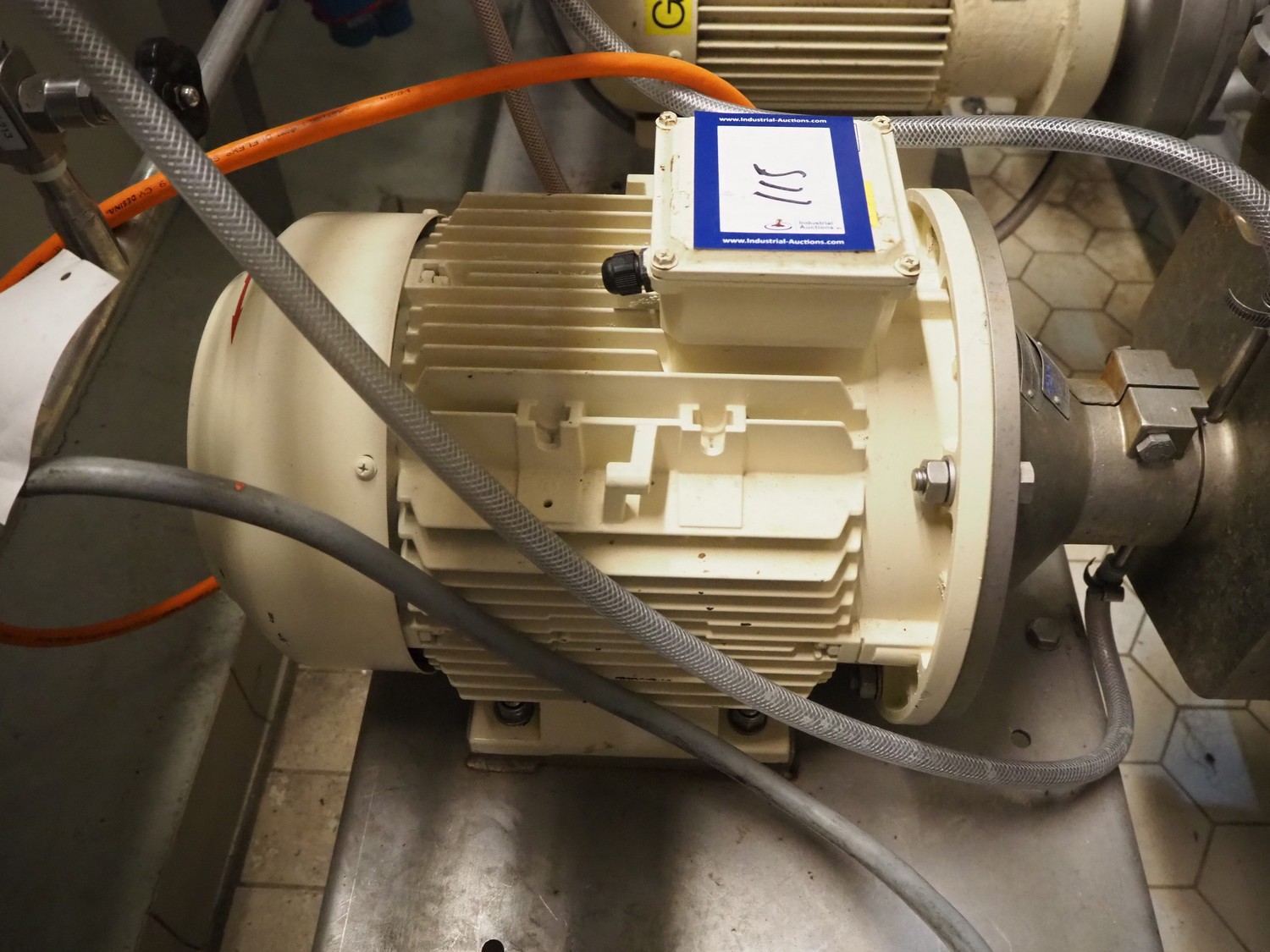 Fristam centrifugal pump, type: FP 742/195 VB, serial number: 0444730120, year of construction: 2021, Q: 15.5 m³/h, H: 40 m, P: 5.5 kW, n: 2900 l/min, dimensions: 700 mm x 400 mm x 450 mm.